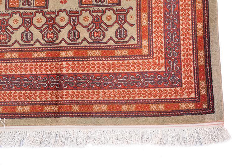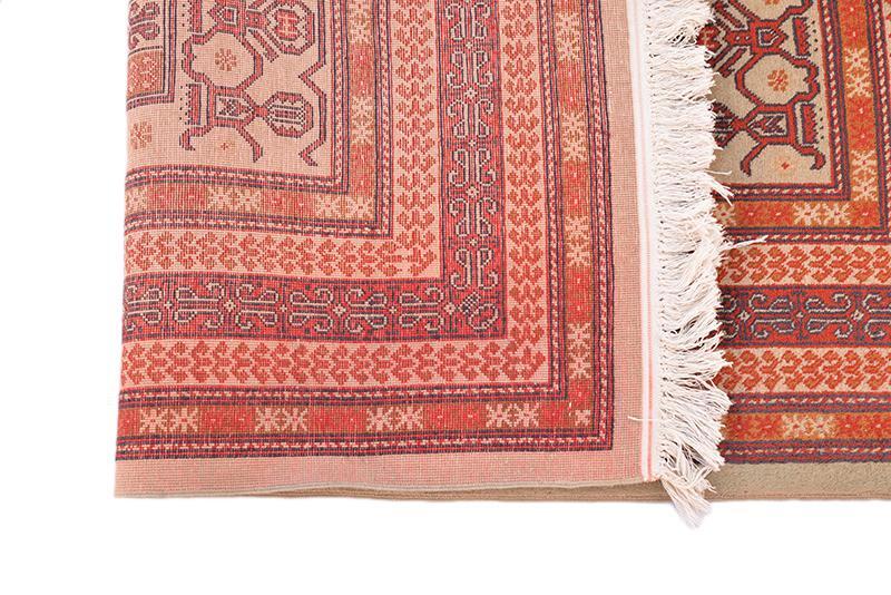 Rug is exactly as described. Colors are rich and fine workmanship is evident. Seller was wonderful to work with, communicated promptly & easily with regard to shipping delays (which were not seller’s fault). Am very happy with beautiful rug & will gladly do business with this seller again.