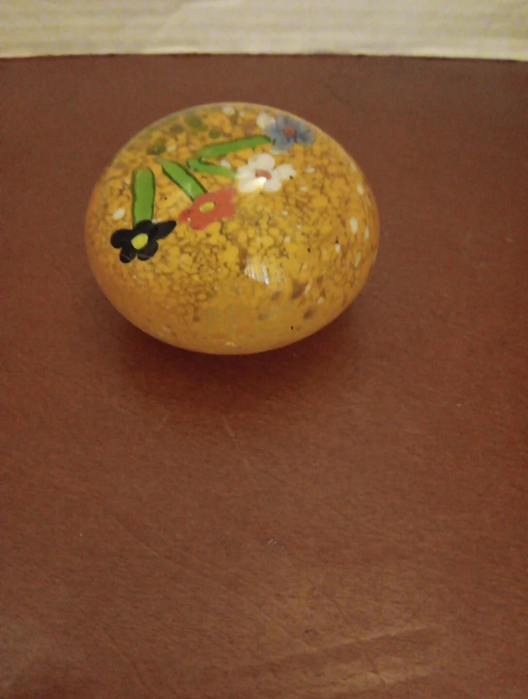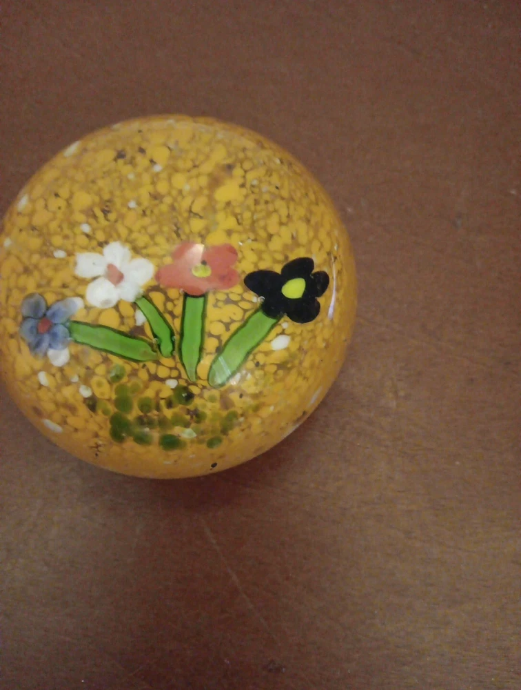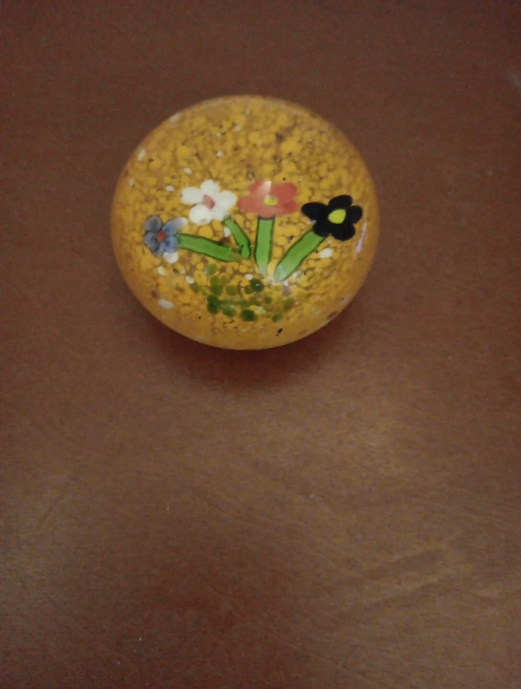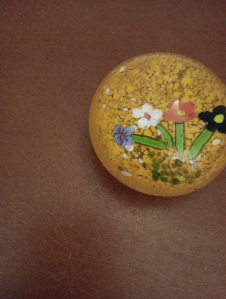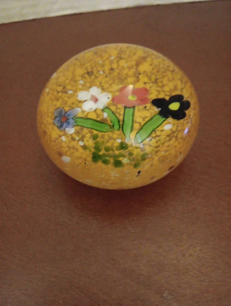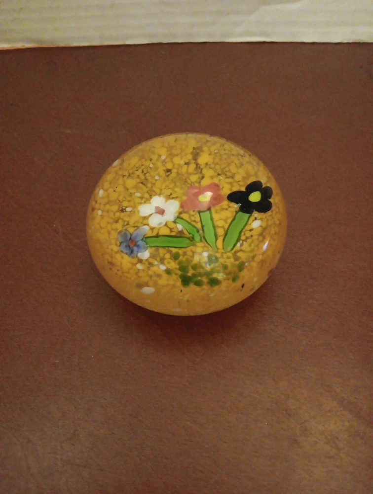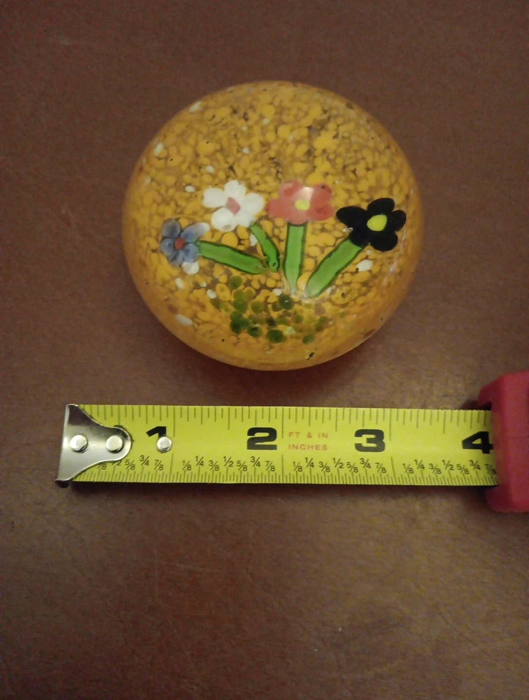 Vintage Paperweight Art Glass Round 3" Flowers Orange Speckled . Condition is Used. Shipped with USPS Ground Advantage.