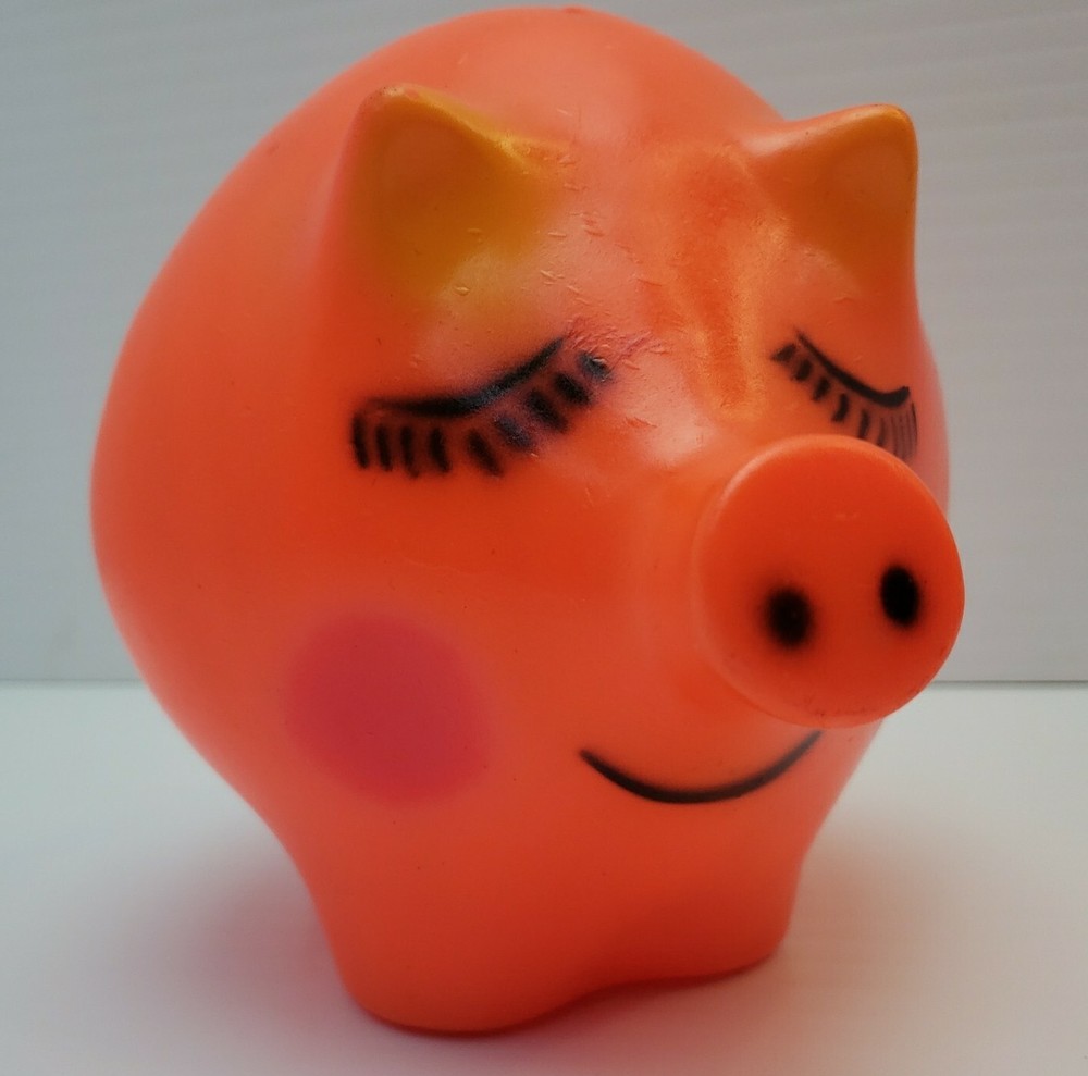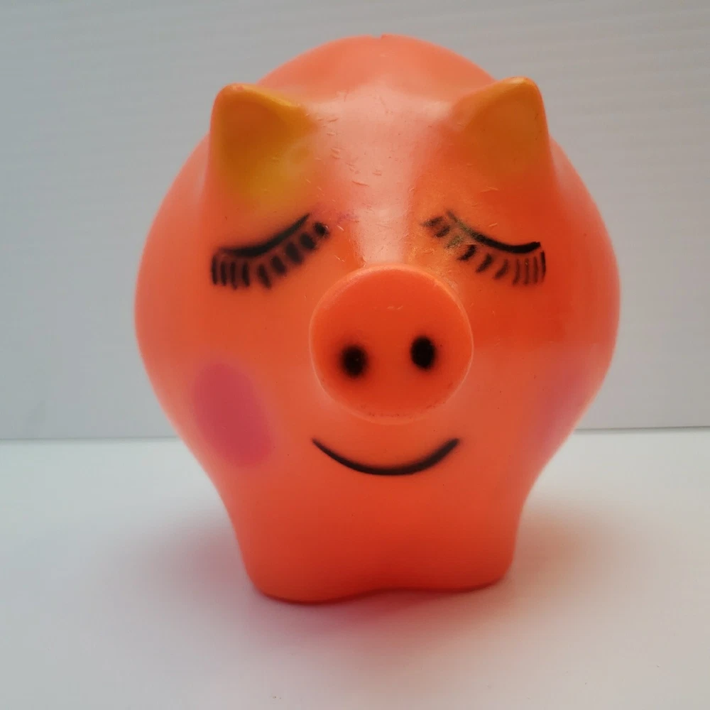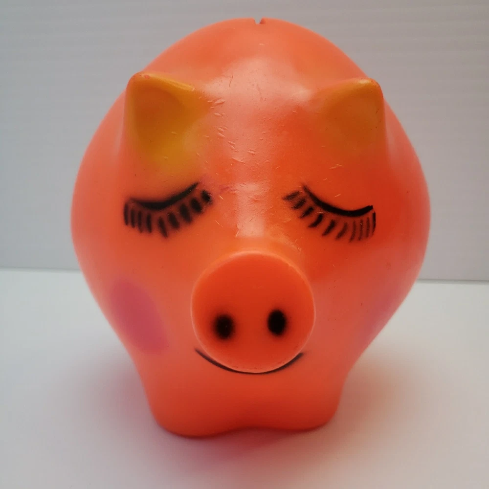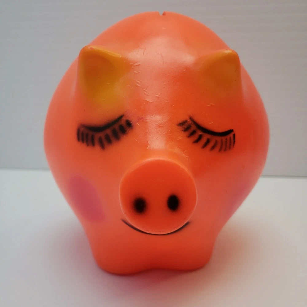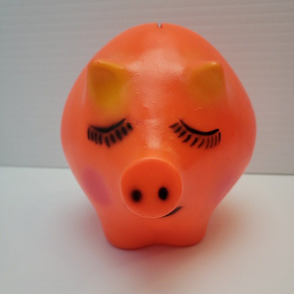 Vintage Plastic Piggy Bank - Made by Dreamland Creations Measures about 6.5" tall and 8" wide. Vintage and used. Some scuffs and small dings in finish. No cracks or broken pieces. Please see all pictures. Smoke free home - Please feel free to message me with any questions. Thanks for looking!