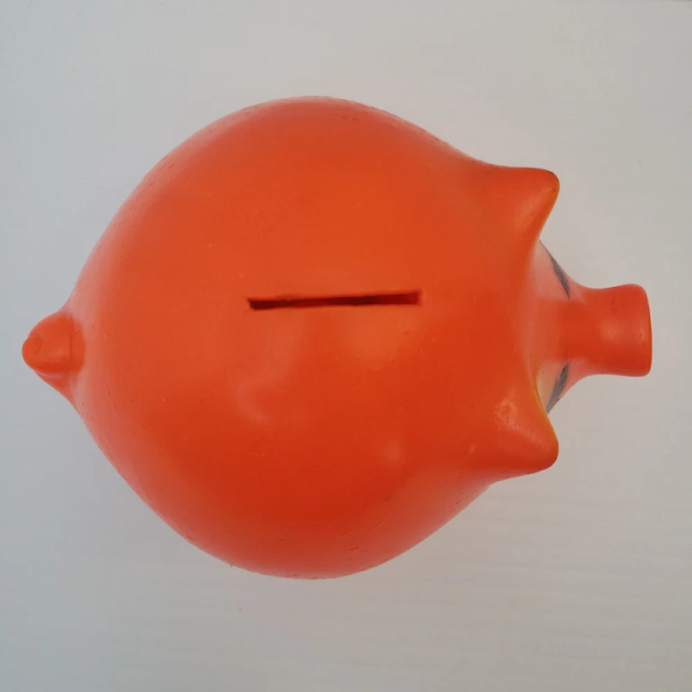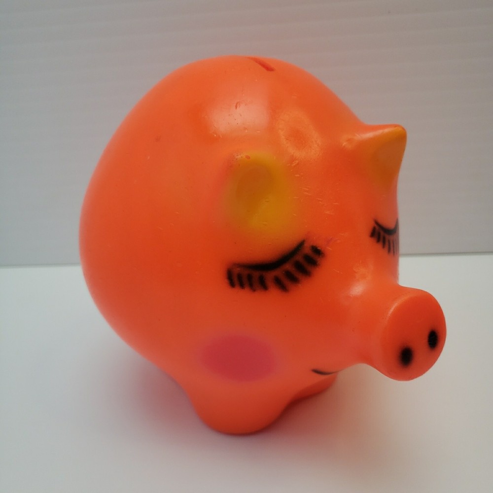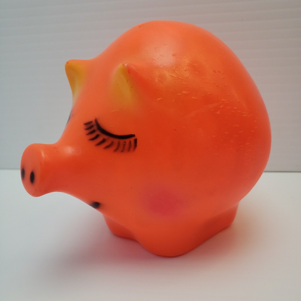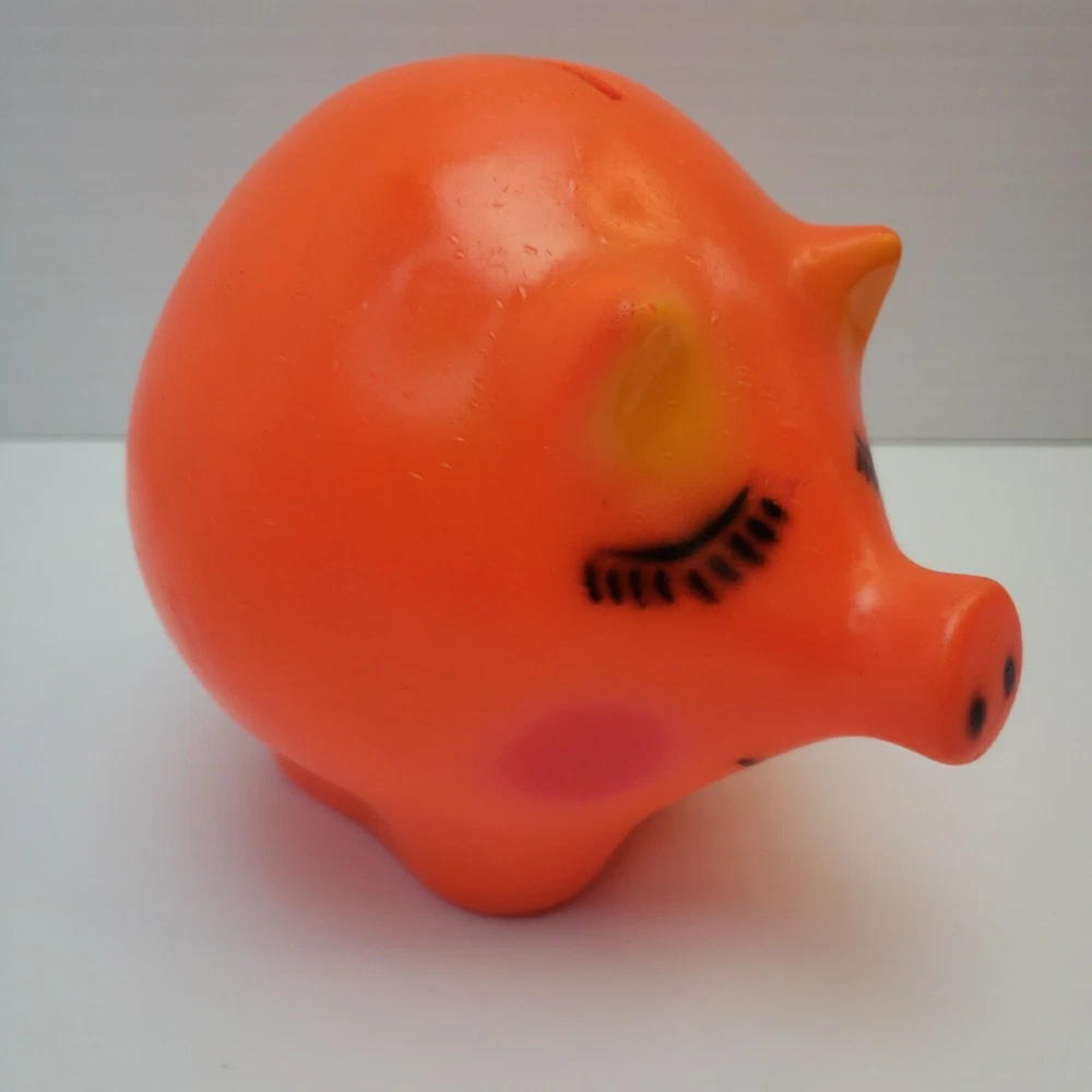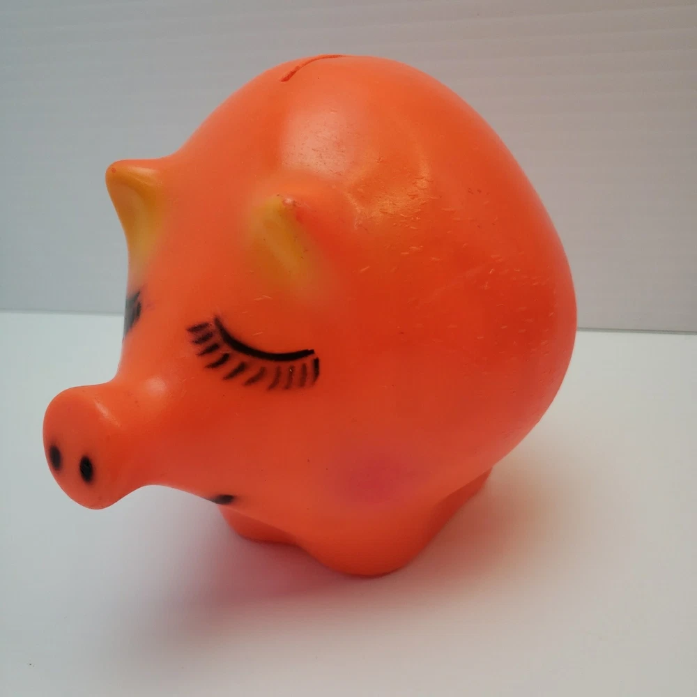 Vintage Plastic Piggy Bank - Made by Dreamland Creations Measures about 6.5" tall and 8" wide. Vintage and used. Some scuffs and small dings in finish. No cracks or broken pieces. Please see all pictures. Smoke free home - Please feel free to message me with any questions. Thanks for looking!