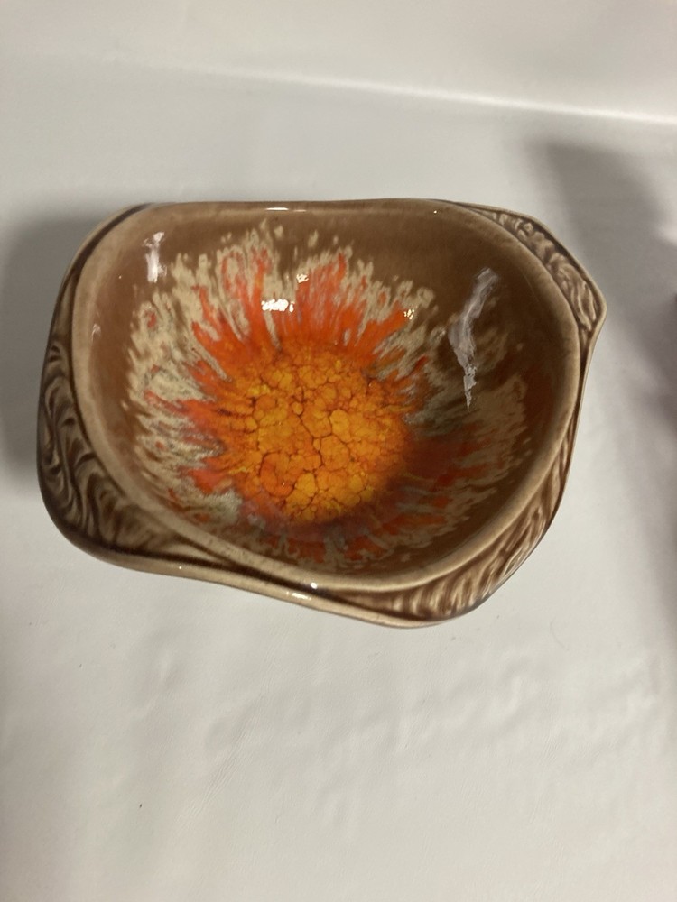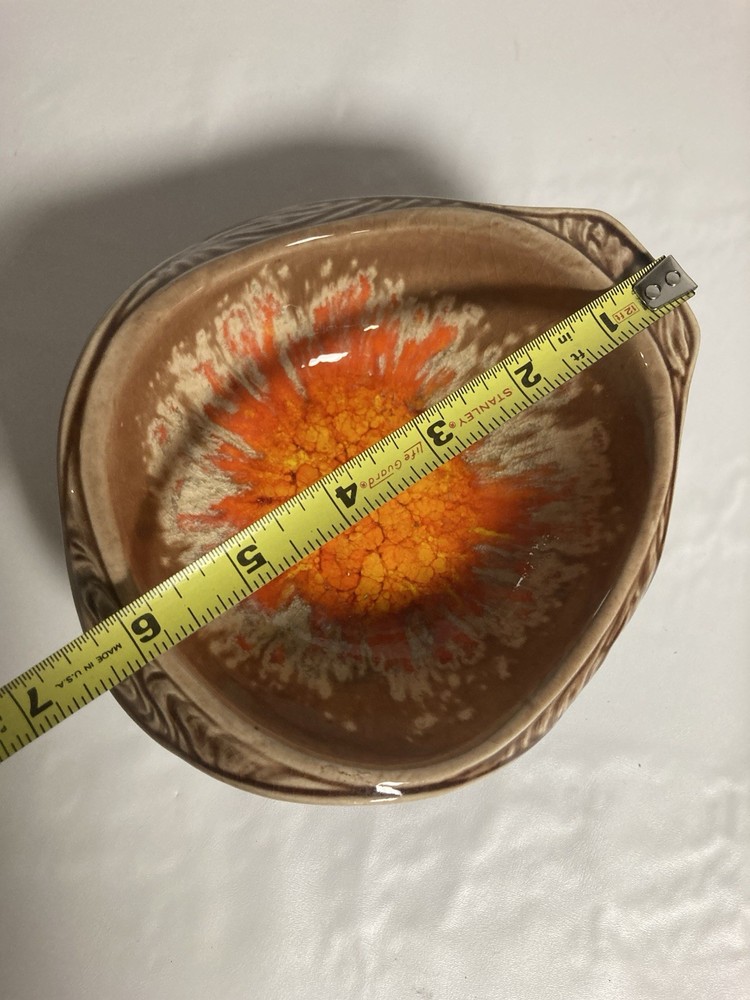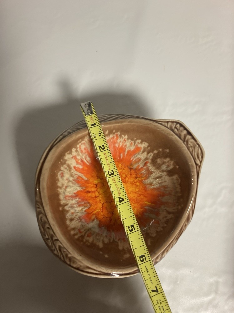 Vintage Pottery Candy Nut Dish Orange & Brown ~ Mid Century ~ 964...