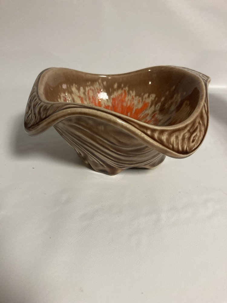 Vintage Pottery Candy Nut Dish Orange & Brown ~ Mid Century ~ 964