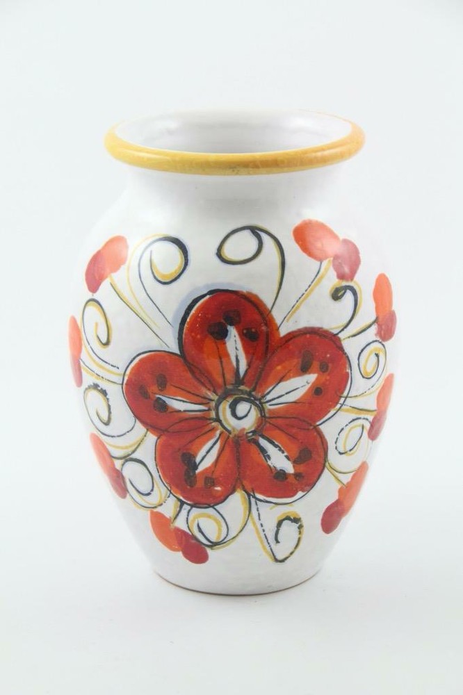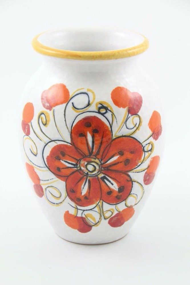 Vintage Pottery Vase Made in Italy Hand Painted Mid Century Mod Orange Flower Vintage Pottery Vase Made in Italy Hand Painted Mid Century Mod Orange Flower Click images to enlarge Description For your consideration..... MCM style pottery vase with a shiny glaze Made in Italy Has a large, hand painted orange flower design on 2 sides Age is unknown Signed Condition Very good condition Shows very little signs of use Free of cracks, chips, crazing & interior water stains Has a few manufacturing glaze pops as shown Please Note: Pictures are also part of the description & condition. Please click on photos to enlarge. Colors of the item can vary depending on the device or devises you are using Payment Immediate payment is required Before paying, please make sure your "Ship To" address is correct. If it is incorrect, there is absolutely nothing we can do once we ship your item US Citizens: Please note that a Sales Tax may apply: Based on applicable tax laws, eBay will calculate, collect, and remit sales tax on behalf of sellers for items shipped to customers in certain states. For a complete list of states please see the Ebay Tax & Import page located in the Ebay Site Map under “Tax”. Shipping Did you move recently? If so, please make sure your Ship To address is correct in your Ebay account & payment account. If your item is shipped to an old address, there is absolutely nothing we can do to stop it Shipping Charges: All items will ship via USPS, UPS or FedEx with Tracking & Insurance based upon the discount we get from Ebay, USPS, UPS & FedEx. All shipping carriers are now charging for DIM size as well as weight & distance. Large items, heavy items, even lightweight large items will be expensive to ship. We have no control over this. Free shipping: We do not offer Free Shipping. Instead, we offer LOW shipping rates based upon the discount we get from Ebay, USPS, UPS & FedEx. All items are shipped with FREE Insurance & FREE Delivery Confirmation. Combined Shipping: Is available on most items when you use the Shopping Cart . Ebay will calculate a discount for you at checkout. Click on the Shipping & Payments Tab for details. Your discount will be in Green. International Shipping: All items ship using Ebay's International Shipping Program . Import duties, taxes, and charges are not included in the item price or shipping cost. These charges are the buyer's responsibility & may be required upon purchase, pick up or upon delivery. Please check with your country's customs office to determine what these additional costs will be prior to bidding or buying. Failure to pick up: For items returned to us due to failure to pick up at the Post Office or any other drop site, only a partial refund of the purchase price will be issued. Ebay fees, shipping costs, taxes and a restocking fee will apply. Terms of Sale Returns: Can be initiated by using Ebya's RMA Form within 30 days from the time of purchase. Returns will not be accepted due to: Buyer's remorse, Because you changed your mind, Its not what you expected, You did not read the listing or review all the pictures we provided, Has been used, worn, washed, altered, played with, damaged, tags removed or was sold "As Is" Or you claim someone in your family made the purchase without your knowledge & permission. Buyer Pays For Return Shipping Item bust be returned using all original packing materials otherwise we will not issue you 100% of your purchase price. Due to rising costs of shipping materials, a minimum of $10.00 will be deducted from your refund. If you send the item back & it arrives damaged, it will be your responsibility to file an Insurance Claim & no refund will be given. After inspecting the item, a refund will be given on the purchase price only. Per Ebay policy, if an item is returned after the due date & the Return is closeed, no refund will be given. We do not offer exchanges or replacements. We do not guarantee or warranty vintage electronics & anything mechanical, nor is it implied. Contact Us DAMAGED ITEM POLICY: We carefully pack each & every item with sufficient packing material to ensure a safe journey. Unfortunately, accidents do happen & sadly an item may arrive damaged. It is just as upsetting for us as it is for you. Should this happen, please send us an email using the Ebay messaging system the day the item arrives. Please include several CLEAR & BRIGHT pictures of the damaged item, box & packing materials along with your phone number that the shipping company can reach you at. We will then file an insurance claim using the information you provided us with. Once the claim has been approved & we receive the insurance funds, we will refund your account. Please keep in mind that this process can take up to 4 weeks. This is something we have no control over. Please be sure to hold onto the damaged item, box & packing materials as you may be contacted by the shipping company. USPS may require you to bring these items to your local Post Office for inspection. If this procedure isn't followed, the claim will be denied. Should the claim be denied for any reason, we will not issue you a refund for the damaged item. Reimbursement will be for the amount that was insured only. Shipping charges are not eligible for reimbursement as stated on all the carrier websites. More information about insurance claims can be found on the USPS, FedEx & UPS web-sites. Pictures sell! Auctiva offers Free Image Hosting and Editing. 300+ Listing Templates! Auctiva gets you noticed! The complete eBay Selling Solution.