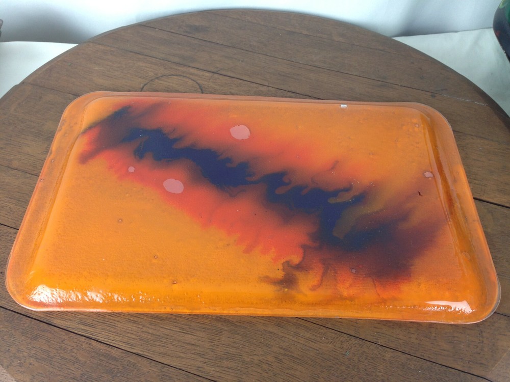 Vintage Rectangular Orange & Blue Glass Tray Mid Century Modern 14.75"L x 9.25"W No chips or cracks