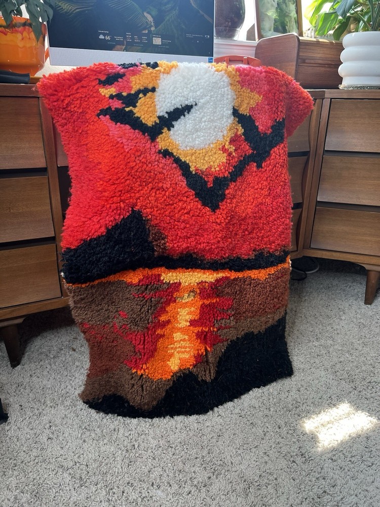 This vintage red ocean seagull bird latchhook is a perfect addition to your wall art collection. The bright red color and intricate design make it a unique piece that will catch the eye of any collector. It was manufactured in the 1970s, making it a great example of retro mid-century design. Approx 27x38” The latchhook is in excellent condition and is ready to be displayed. It would make a great gift for any vintage or retro decor enthusiast. Don't miss your chance to own this unique piece of wall art.
