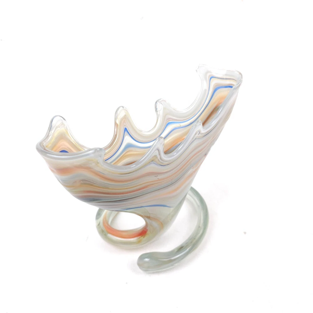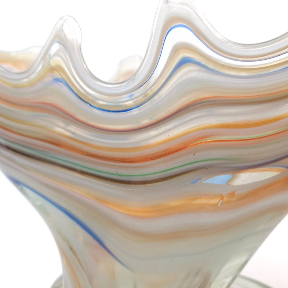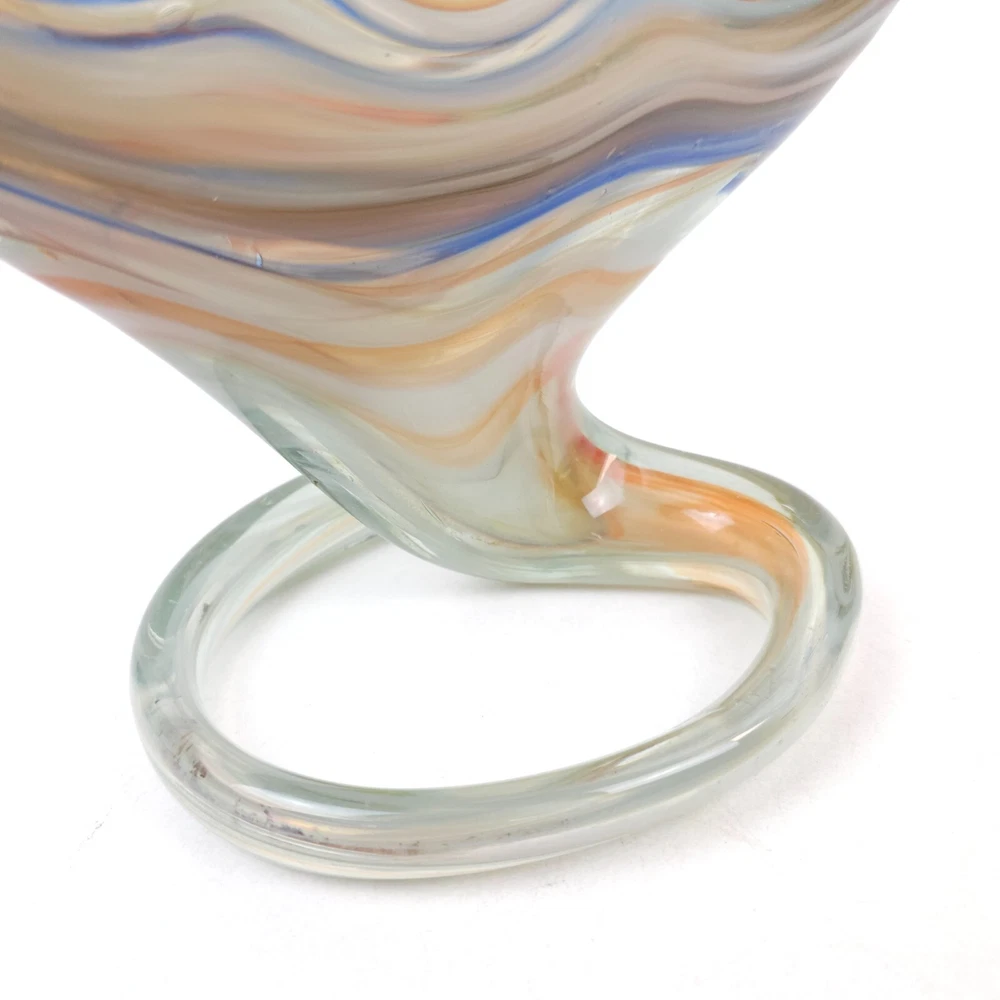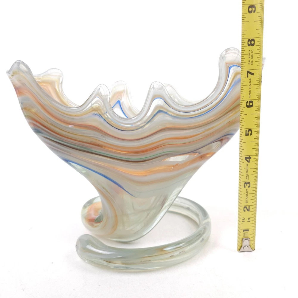 Vintage SOONER Mid-Century Murano Style Glass Trumpet Vase 10" Long Orange Blue Beautiful Sooner art glass vase. Good pre-owned condition with no chips, cracks, or signs of repair. There is some dirt in the bottom from normal use. Measures approx. 9.75" x 7.5" x 6" and weighs 2 lbs. 7 oz. Made in USA. Please see pictures of the actual item(s) for a better idea of condition. Thanks for looking! Please ask any and all questions prior to using "Buy It Now" or making a best offer. We are very serious about selling so fair offers are welcome. Note that offers of less than half our asking price will usually be ignored. MONEY BACK GUARANTEE FOR ANY REASON! ----- cmb