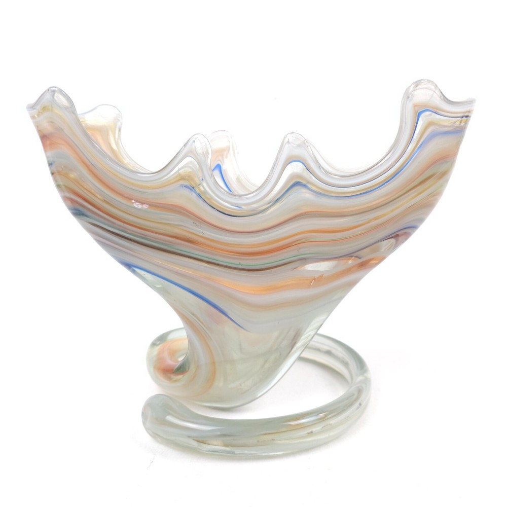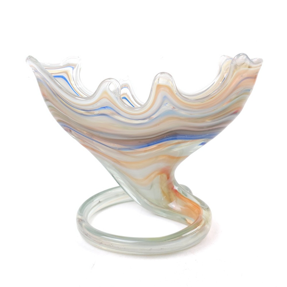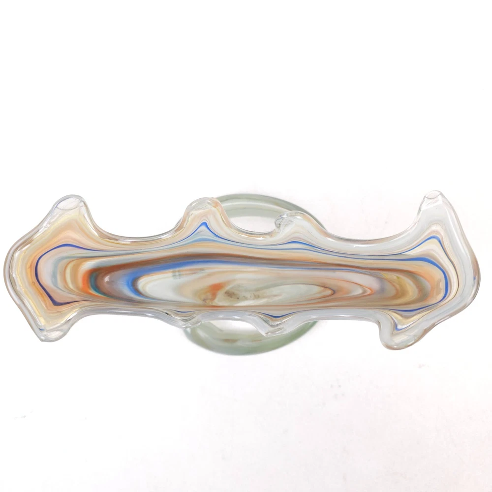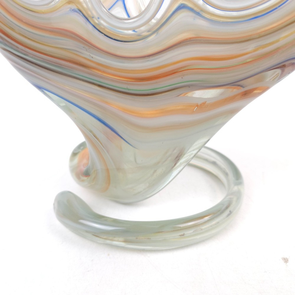Vintage SOONER Mid-Century Murano Style Glass Trumpet Vase 10" Long Orange Blue Beautiful Sooner art glass vase. Good pre-owned condition with no chips, cracks, or signs of repair. There is some dirt in the bottom from normal use. Measures approx. 9.75" x 7.5" x 6" and weighs 2 lbs. 7 oz. Made in USA. Please see pictures of the actual item(s) for a better idea of condition. Thanks for looking! Please ask any and all questions prior to using "Buy It Now" or making a best offer. We are very serious about selling so fair offers are welcome. Note that offers of less than half our asking price will usually be ignored. MONEY BACK GUARANTEE FOR ANY REASON! ----- cmb