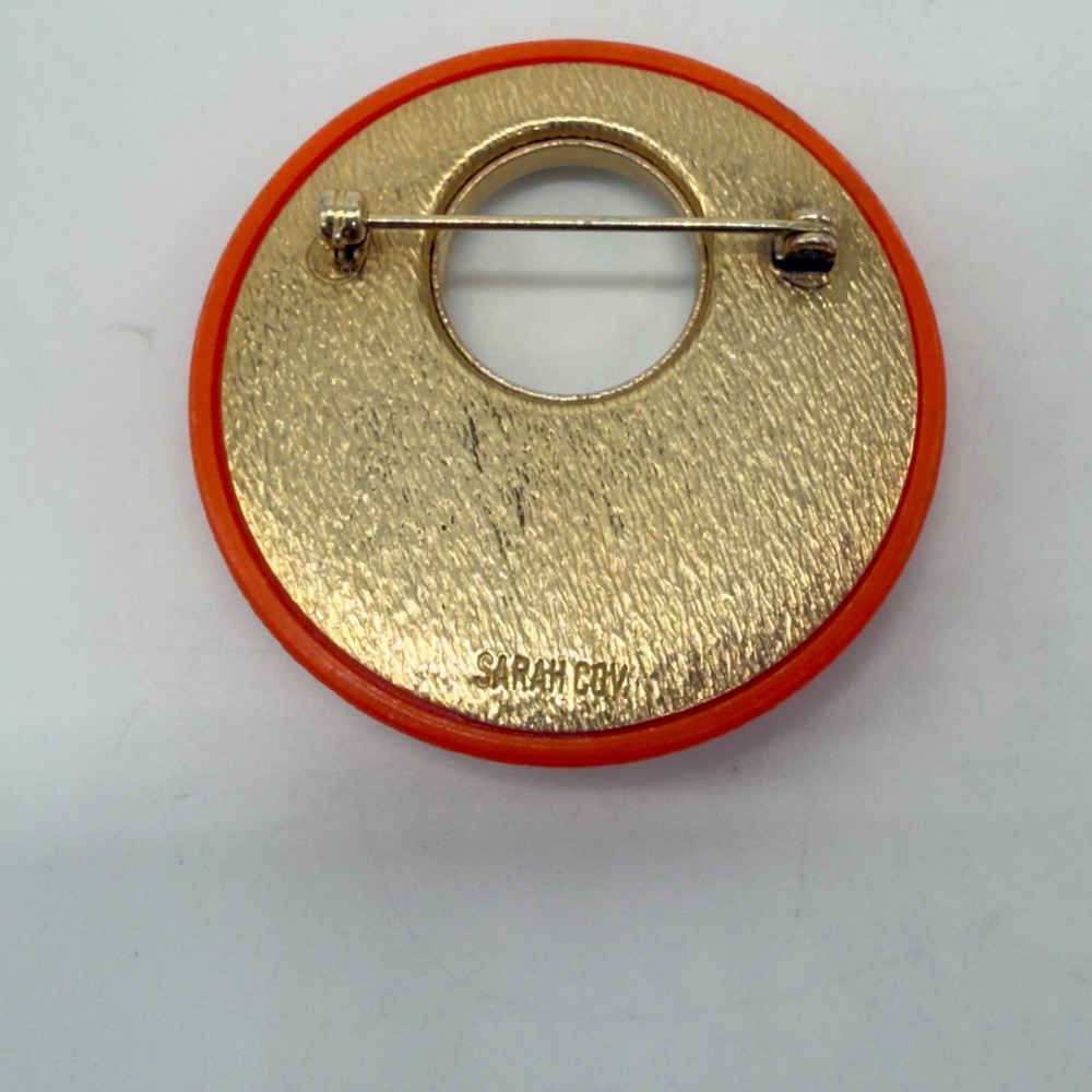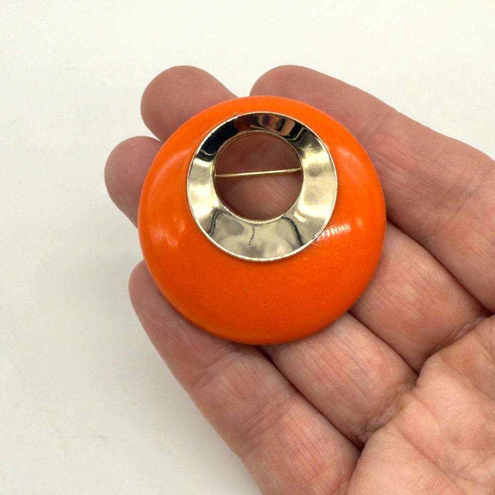 This gorgeous vintage brooch has such a vibrant pop of color—the orange lucite paired with gold-tone metal gives it a perfect mid-century modern vibe. It arrived quickly, well-packaged, and looks even better in person. Love that the seller offers combined shipping too! A must-have for any jewelry collector.
