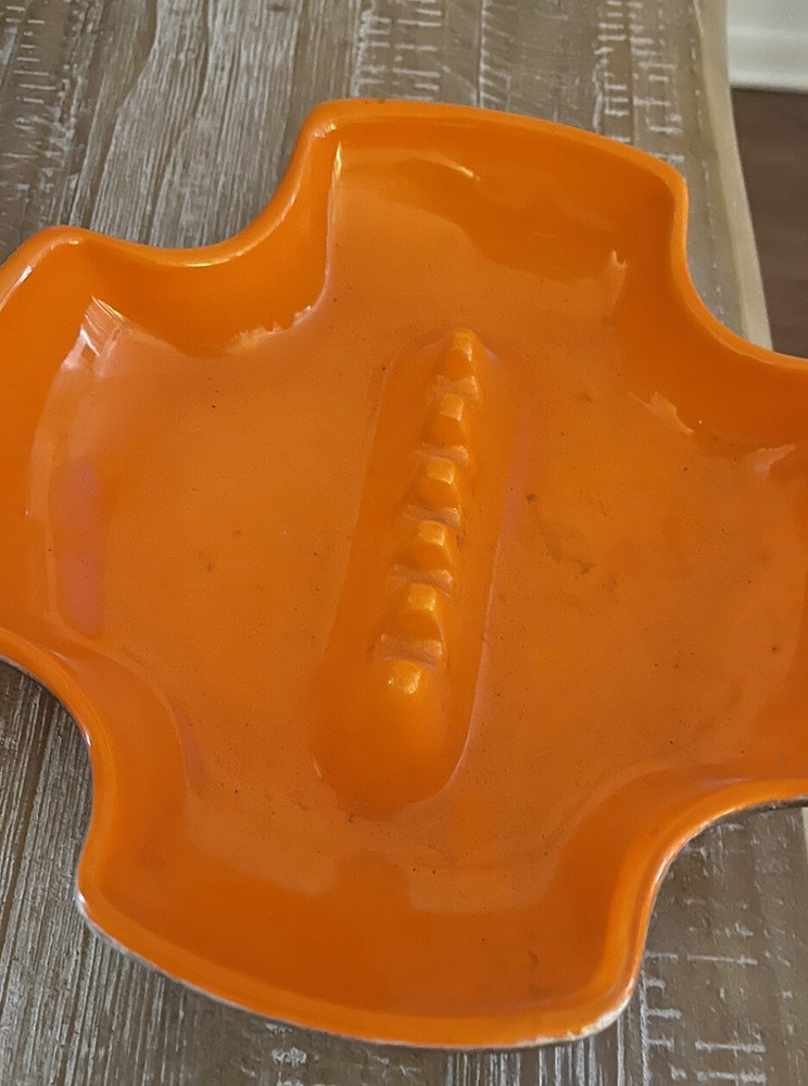 Vintage Sequoia Ashtray Flame Red Orange Lava Glaze W/wood Finish Mid Century.