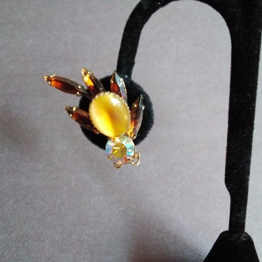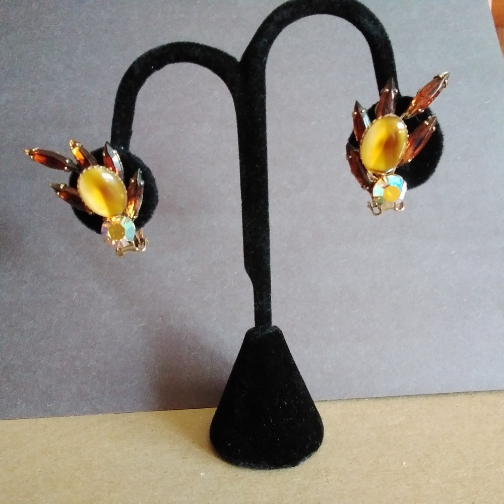 Vintage Signed Celebrity Mid-Century Clips Amber Brown AB Crystal. The earrings are in Excellent Condition. Stones are secure and prong-set. Clips are secure. The Celebrity Jewelry Company of New York made fine costume jewelry from the 1950's to the 1970's. The earrings will be carefully packed in a box and mailed with Free Shipping in the U.S.