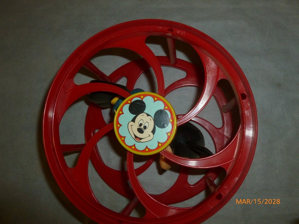 This vintage Mickey Mouse roll-back wheel toy is pure nostalgia! The bright colors and classic design bring back childhood memories—it rolls smoothly just like the original. Perfect for collectors or Disney fans who love retro toys. The quality is amazing for its age, and it looks great on display. A must-have for any Disney enthusiast!