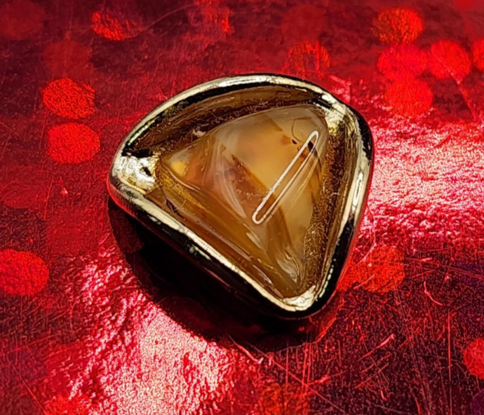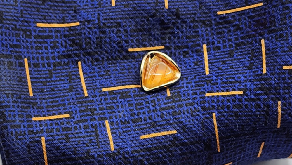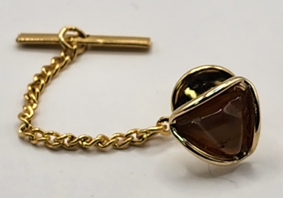 Just got this and it's even better in person! The amber stone has such warm, rich color and the gold tone setting gives it a perfect vintage feel. It adds a really classy touch to any tie or lapel.
