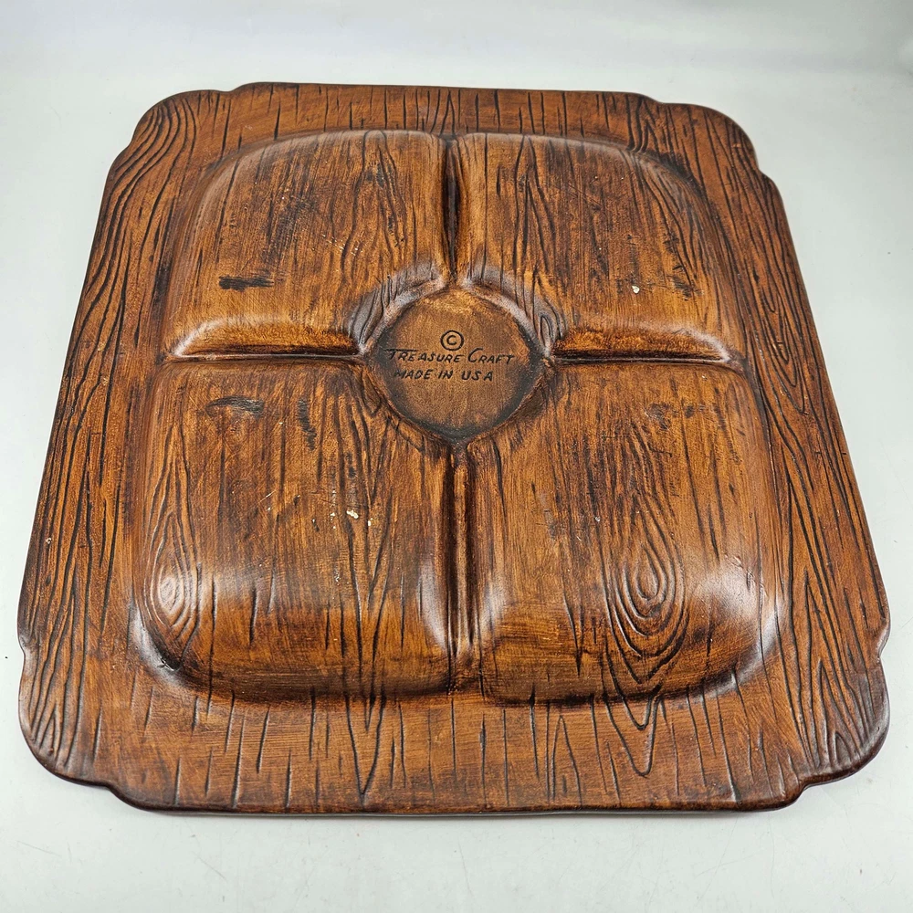Vintage Treasure Craft USA Mid Century Orange Red Divided Candy Relish Dish. Measures about 13.5X 13.5" , 1" T. In excellent condition. Listing and template services provided by inkFrog...