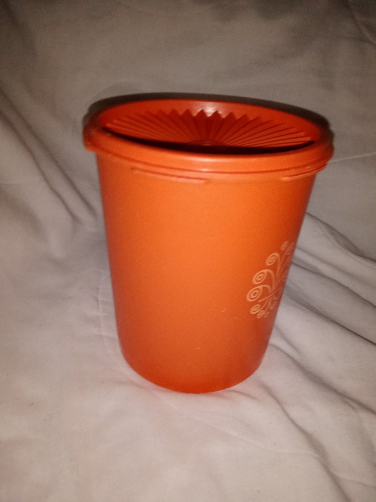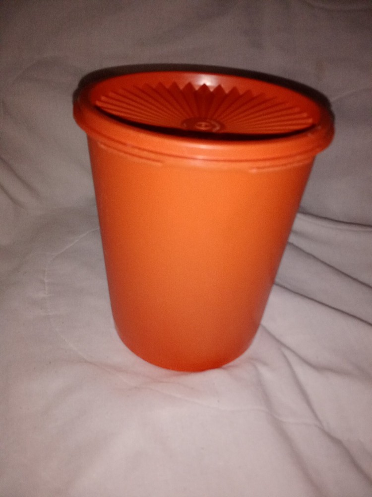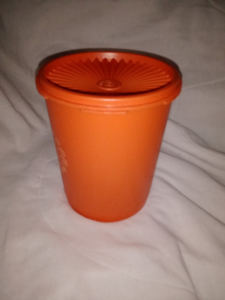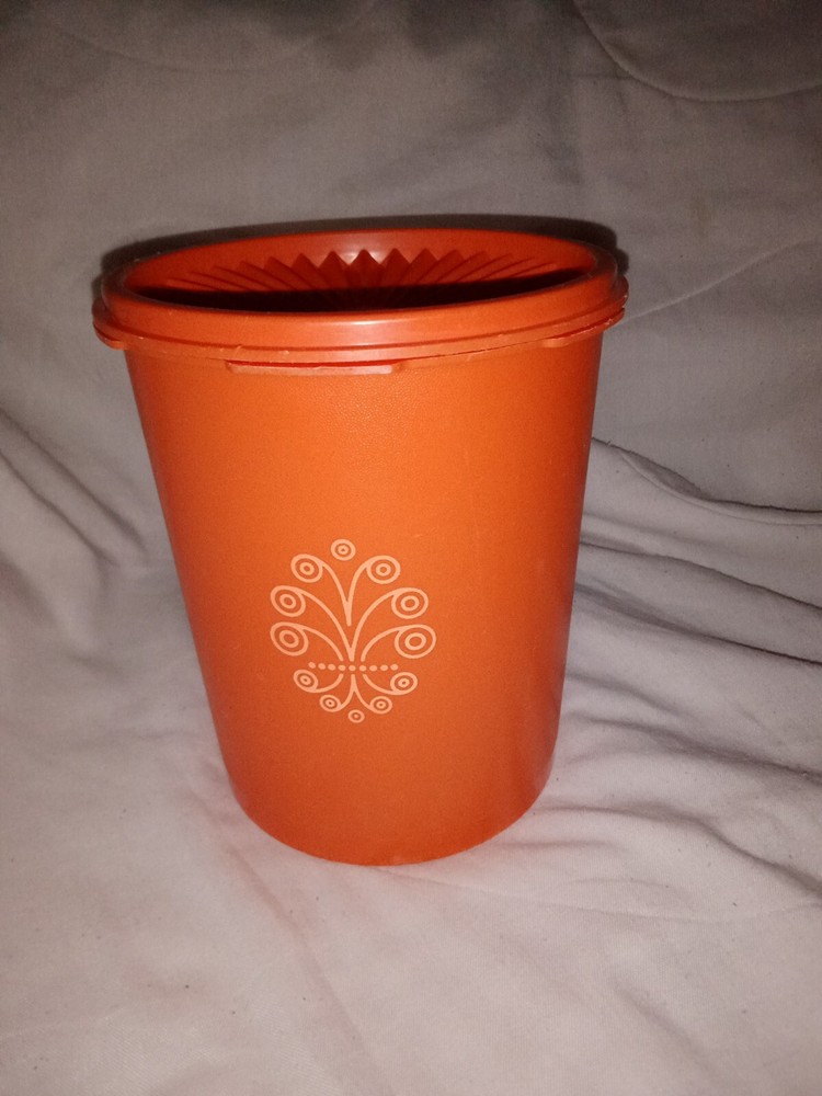 Vintage Tupperware Medy/Small Food Storage Canister 809-13 Mid Century Modern. Tape measurements are 6 7/8" tall and 6" diameter. A few small knicks on inside, see photos....