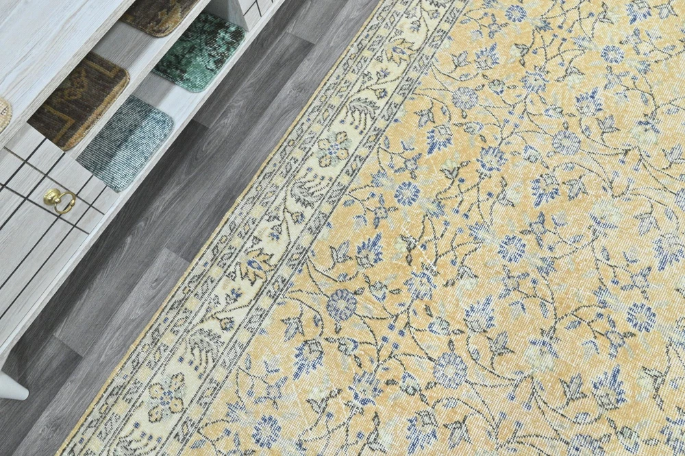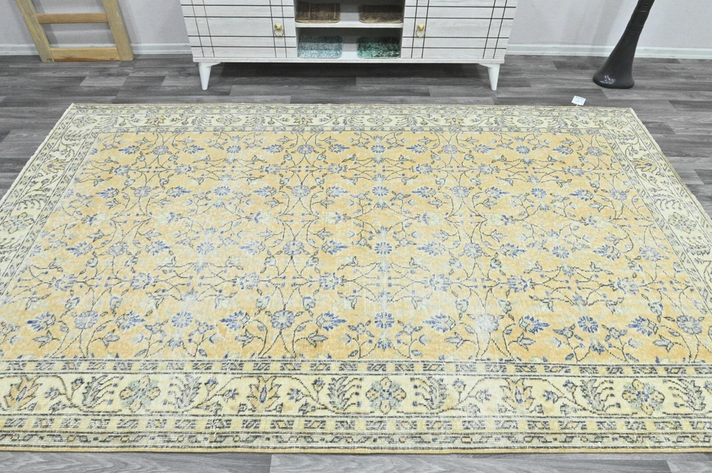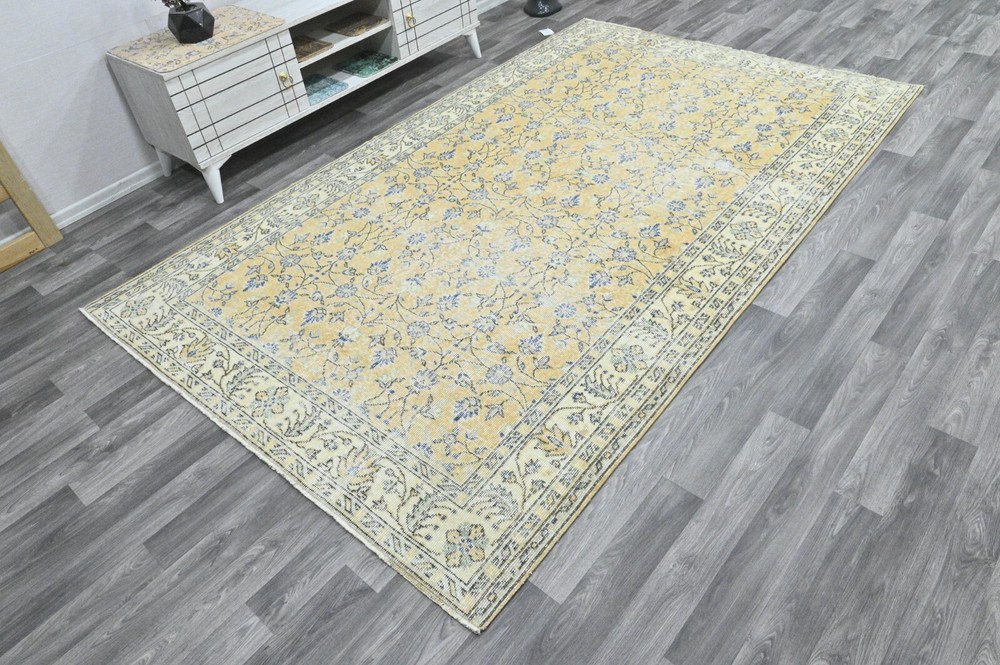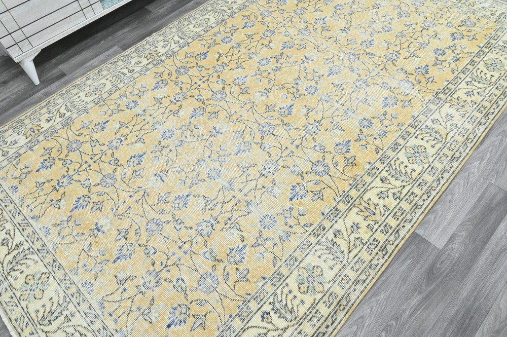 This Oushak Turkish Vintage Area Rug is a one-of-a-kind piece hand-knotted and handwoven by skilled artisans using pure wool and natural tones to create a stylish Oriental design in Orange-Beige-Blue. It is in excellent condition, having been professionally cleaned, and is ready for delivery. DETAILS: This rug is part of our collection of vintage hand-knotted rugs, most of which were woven in the 1950s, 1960s, and 1970s. ➛Size: 5'38 x 8'85 feet (164 x 270 cm, 64 x 106 inches) - SKU:9056 ➛Materials: Hand-knotted with natural wool and cotton ➛Availability: Unique item, only one in stock ➛Condition: Professionally cared for, in excellent condition ➛Shipping: Free international shipping with expedited air delivery ➛Lead time: Ready to ship in 1 day ➛Bonus: Mini gift rugs included in the package Please note that while we do our best to accurately represent the colors of our vintage rugs, there may be slight variations due to differences in screen color, contrast, and brightness. We offer a 14-day return policy for a full refund. Please contact us for wholesale orders. If you have any questions, please feel free to contact us via eBay chat