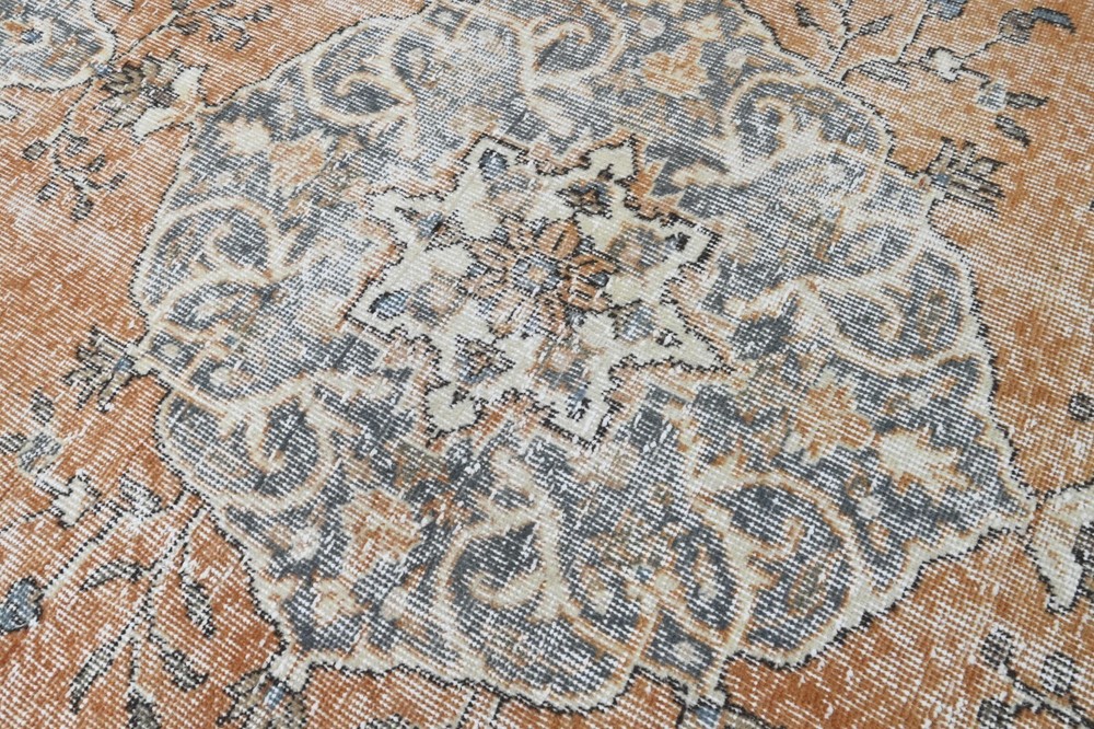 This Oushak Turkish Vintage Area Rug is a one-of-a-kind piece hand-knotted and handwoven by skilled artisans using pure wool and natural tones to create a stylish Oriental design in Orange and Gray. It is in excellent condition, having been professionally cleaned, and is ready for delivery. DETAILS: This rug is part of our collection of vintage hand-knotted rugs, most of which were woven in the 1950s, 1960s, and 1970s. ➛Size: 5'90 x 9'90 feet (180 x 302 cm, 70 x 118 inches) - SKU:9763 ➛Materials: Hand-knotted with natural wool and cotton ➛Availability: Unique item, only one in stock ➛Condition: Professionally cared for, in excellent condition ➛Shipping: Free international shipping with expedited air delivery ➛Lead time: Ready to ship in 1 day ➛Bonus: Mini gift rugs included in the package Please note that while we do our best to accurately represent the colors of our vintage rugs, there may be slight variations due to differences in screen color, contrast, and brightness. We offer a 14-day return policy for a full refund. Please contact us for wholesale orders. If you have any questions, please feel free to contact us via eBay chat