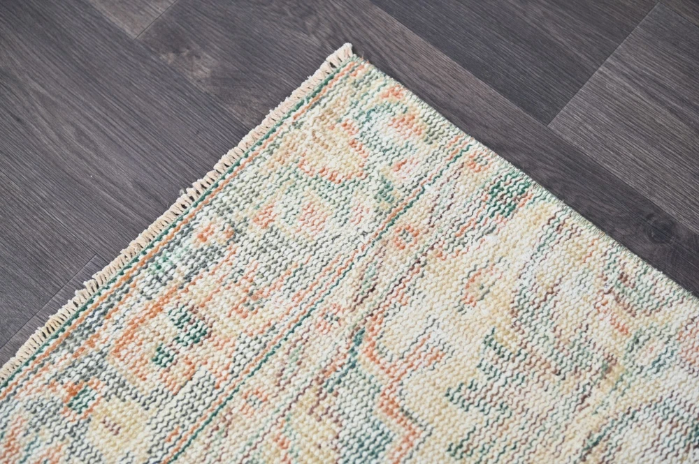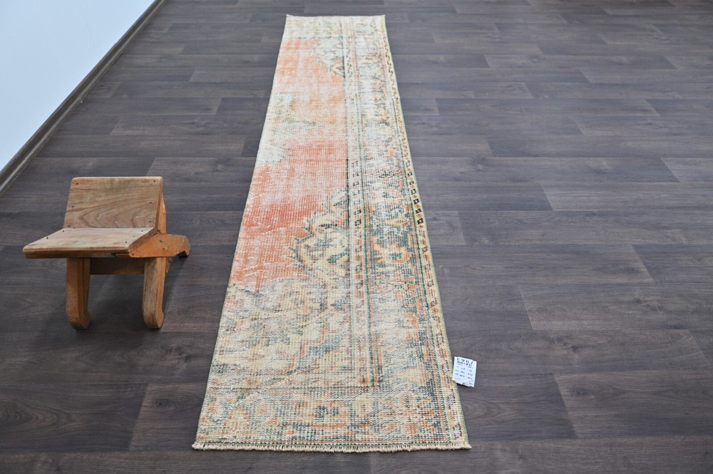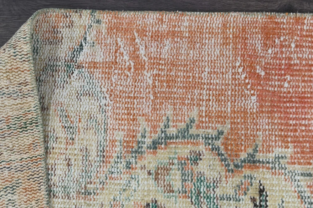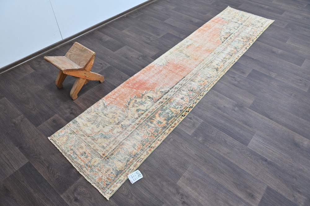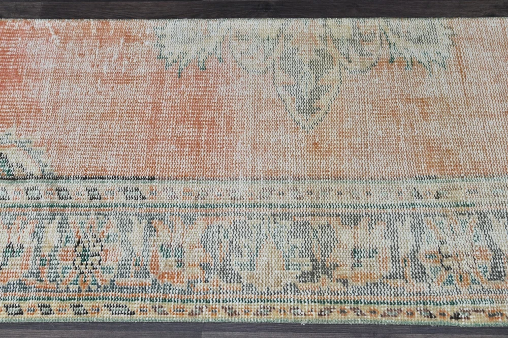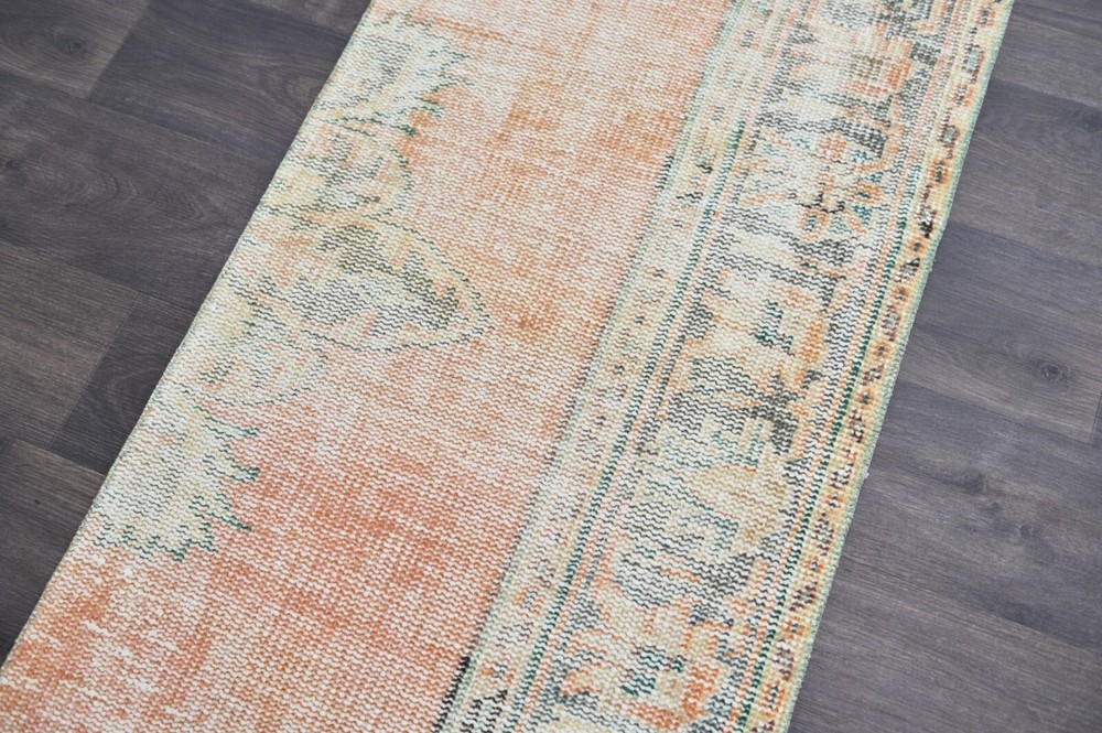This orange 2x9 vintage rug is a timeless art piece made by artisans in the Oushak Anatolia region of Turkey. This carpet was hand woven with fine quality natural wool which extends the durability of the rug for generations. This unique Turkish vintage rug was handmade during the 1960’s and is made of 100% wool on a cotton foundation. If you’re looking for an authentic oriental carpet to invigorate your home, this oriental Turkish rug will be a great add to any decor style. This anatolian rug measures 2'0 x 8'8 feet - 24 x 106 inches - 61x271 centimeters - SKU:7963 All vintage rugs we offer are thoroughly washed and cleaned and are ready to use as soon as you receive them. Age-related wear and natural inconsistencies are inherent in all handmade vintage rugs. Each vintage rug we offer is one-of-a-kind and authentic so there's only one unit in stock! We offer free worldwide shipping for all vintage rugs in 1-2 business days. It takes 3-6 business days business days to reach North America, 3-5 for Europe and 7-10 to Australia and New Zeeland. We pay special attention to make sure that the colors of the vintage rugs are represented as accurately as possible. Still, there may be slight variations in what you see on your computer/phone depending on the screen’s color, contrast, and brightness.