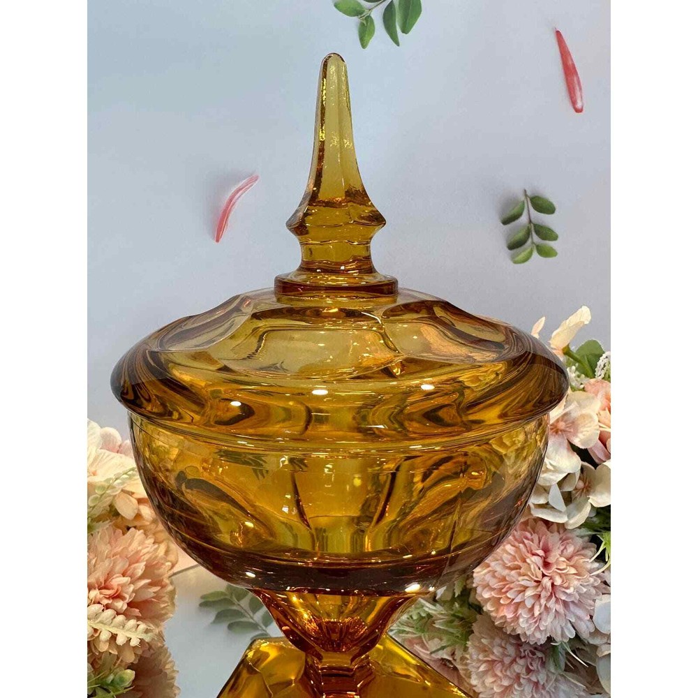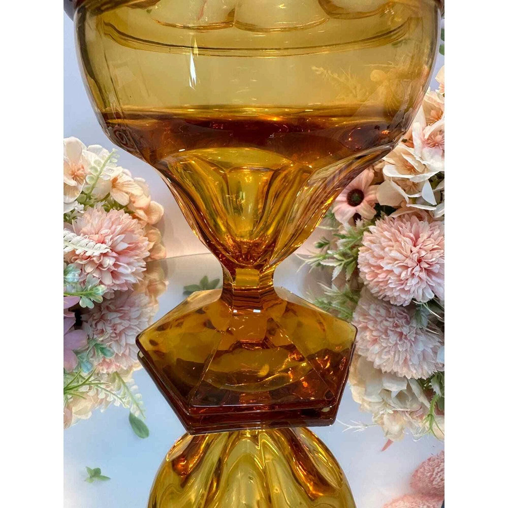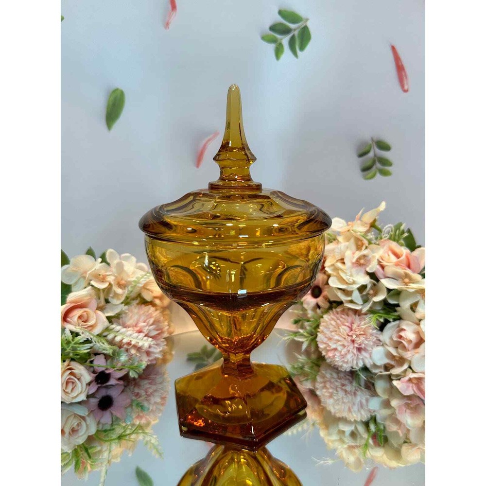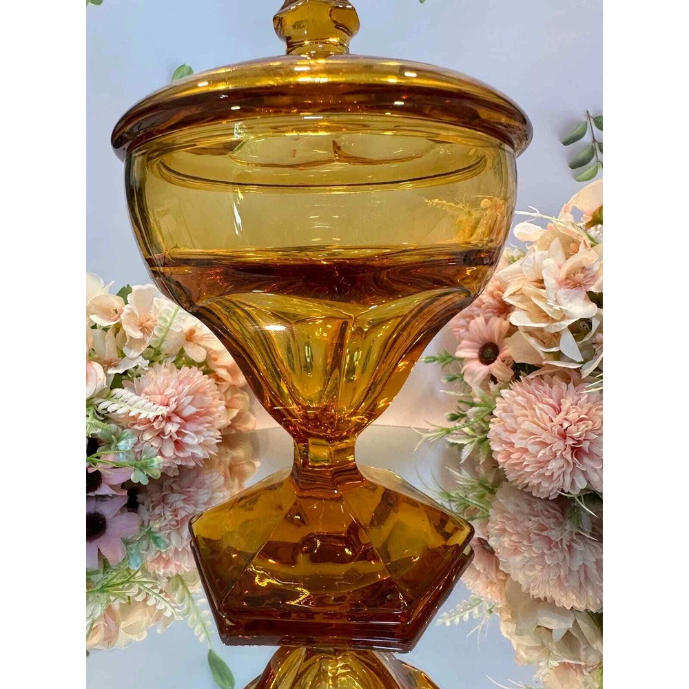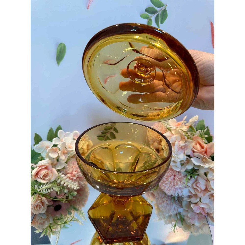 <![CDATA[<div>Amazing, Viking hexagonal glass candy bowl in stunning brown/orange color. Tall and stunning piece with a heavy, glass lid to match! Great vintage condition. No scratches, chips, or defects. Truly a wonderful collectors piece to own!