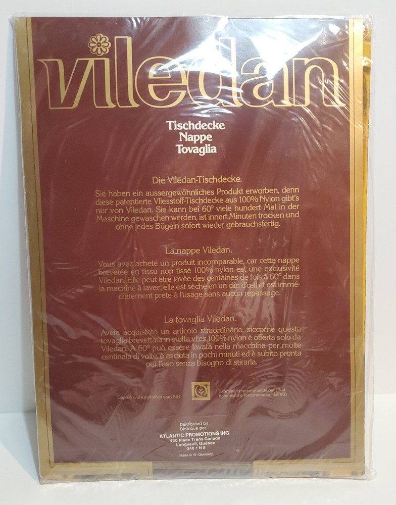 Vintage Viledan Tablecloth Vinyl Mid Century Brown Orange New 52"x64" 130x160cm.