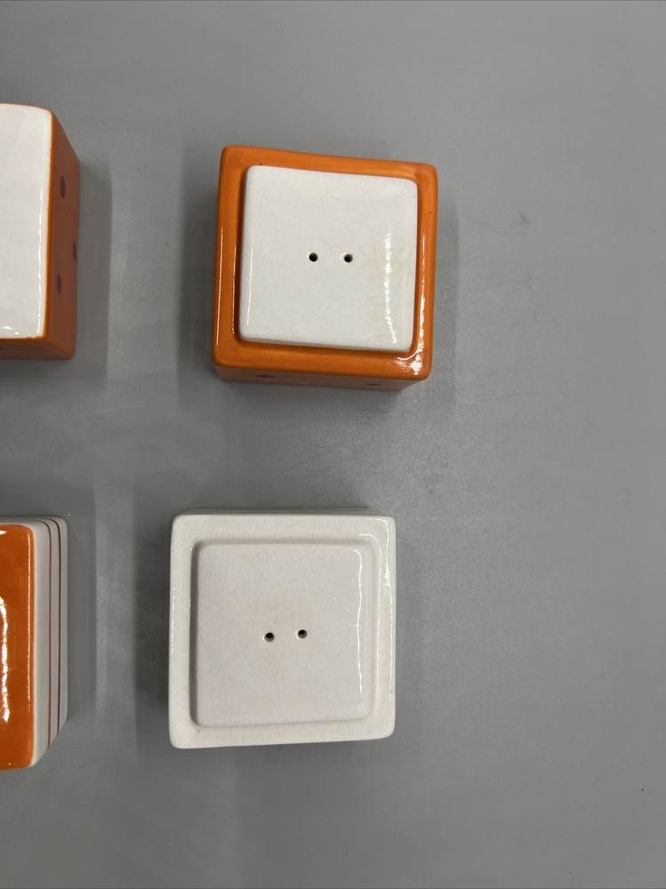 Vintage Orange salt and pepper shakers Mid Century Modern 2”x1” Each. Thank you for reading the description and looking at photos. If you are unsure of anything please ask questions to save any frustrations. -make an offer, it can’t hurt - Don’t assume, check photos and descriptions. Most of my items are acquired from Estate sales and auctions. I test what I can and let you know what I did. In the case of electronics, I’m not a technician, I test it and describe it the best I can. If you want me to try a specific function, let me know. Mail, the shipping is based on the estimated weight and box size. eBay calculates it not me. Mailing, I mail as quick as possible to get it to you, if it’s over $100, I get signature confirmation of and insurance. I also make sure and take to the counter and get a receipt. If under $100, I may drop it in the carrier’s bin, and they scan it in later. If you want something signature confirmed, let me know and I will add that to your total. It’s a couple dollars more. In transit- once I drop it off, it really out of my control. But happy to discuss any concerns. Feedback, if you have any issues, let me know, I’m willing to work with you. If you don’t read descriptions or don’t review photos, it makes it harder to come to a solution. eBay is good at helping as well, I will reach out to them and so should you. My intention is not to deceive or cheat. Be safe , be well, be kind