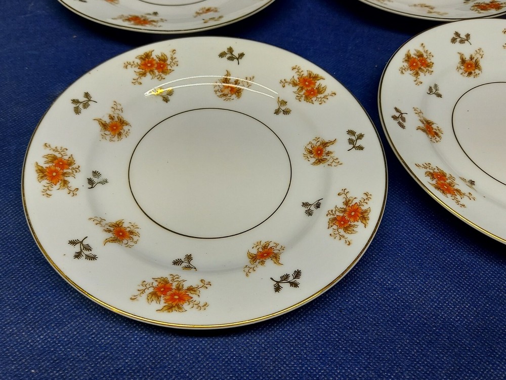 Vintzge Mid-century Noritake Dulcey Set/6 Bread/Salad Plates. White with orange flower sprays. Plates measure 6 3/8" in diameter and are pre-owned in excellent condition without any chips or cracks. S...
