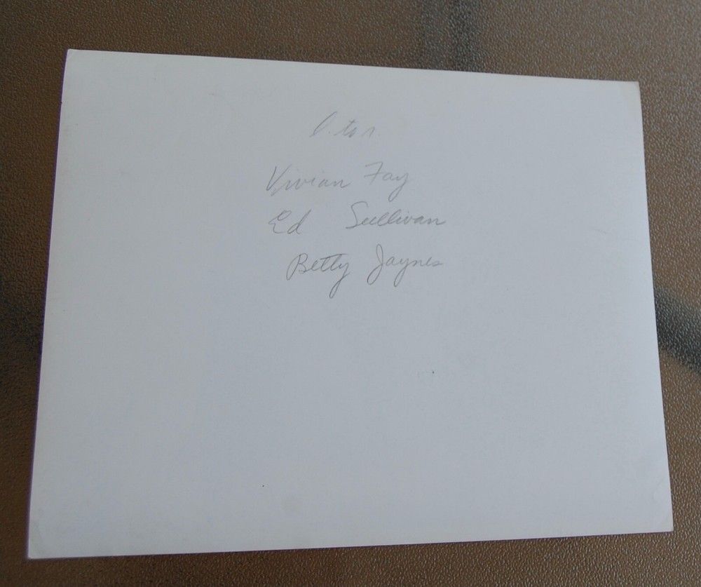 Here is an original glossy publicity still from Ed Sullivan's production Stardust Cavalcade in 1940. Vivian Fay, Ed Sullivan, Betty Jaynes Names on back in pencil 8" X 10" Buy from a trusted and reliable seller. I source my items from estate sales, thrift shops, auctions and yard sales. My home is non-smoking and pet-friendly but I cannot vouch for their original homes.