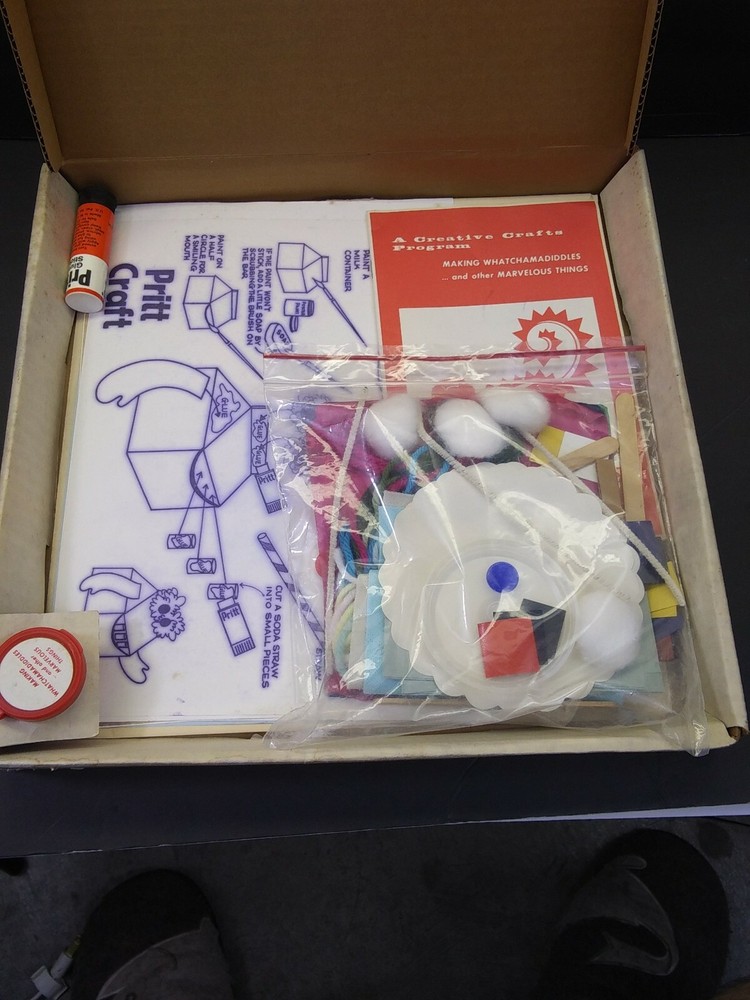 You are bidding on one vintage 1973 copy of A Creative Crafts Program "Making Whatchamadiddles...", A School Service Product grom the Colgate-Palmolive Company. The set looks to be new, in the box, but there is a small scratch on the album. If you have any questions, please feel free to ask. Thanks for looking!!!! A6