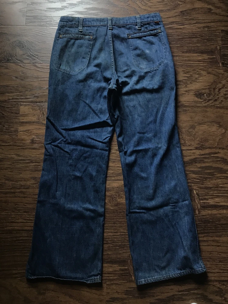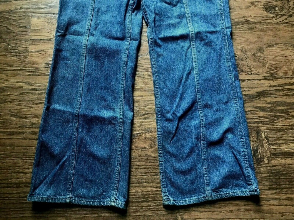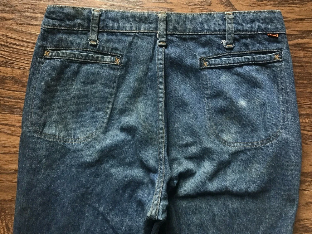 Vintage 60s-70s Levi's Retro Orange Tab Denim Mid Rise Flare Hippie Jeans The jeans are in good condition! Made in USA, They are labeled as a size 34W but measure as a 32W. A very rare vintage pair with an orange tab. The jeans do have some slight marks and stains and the back of the waist button has left some rust like residue (Please see photos) They measures 32" waist, 30" Inseam, & 11" Rise, & 10" Leg Opening Shipped with USPS Priority Mail. (see photos) Kept in a pet and smoke-free environment. Please examine the photos thoroughly! Shipping! Will be done USPS Priority mail. Other shipping providers available upon request. Returns accepted within 30 days of purchase if in the exact same condition. I strive for a 5-star rating! Thanks for looking