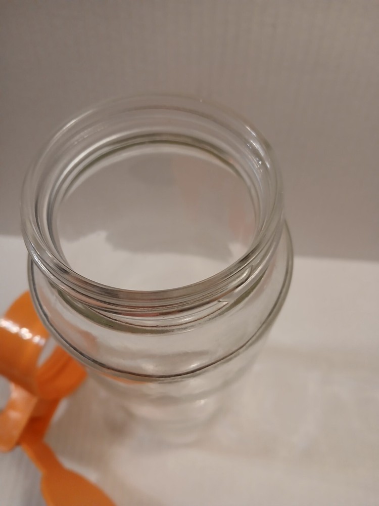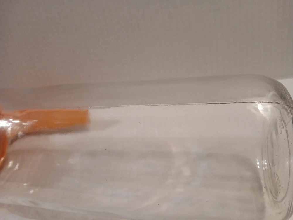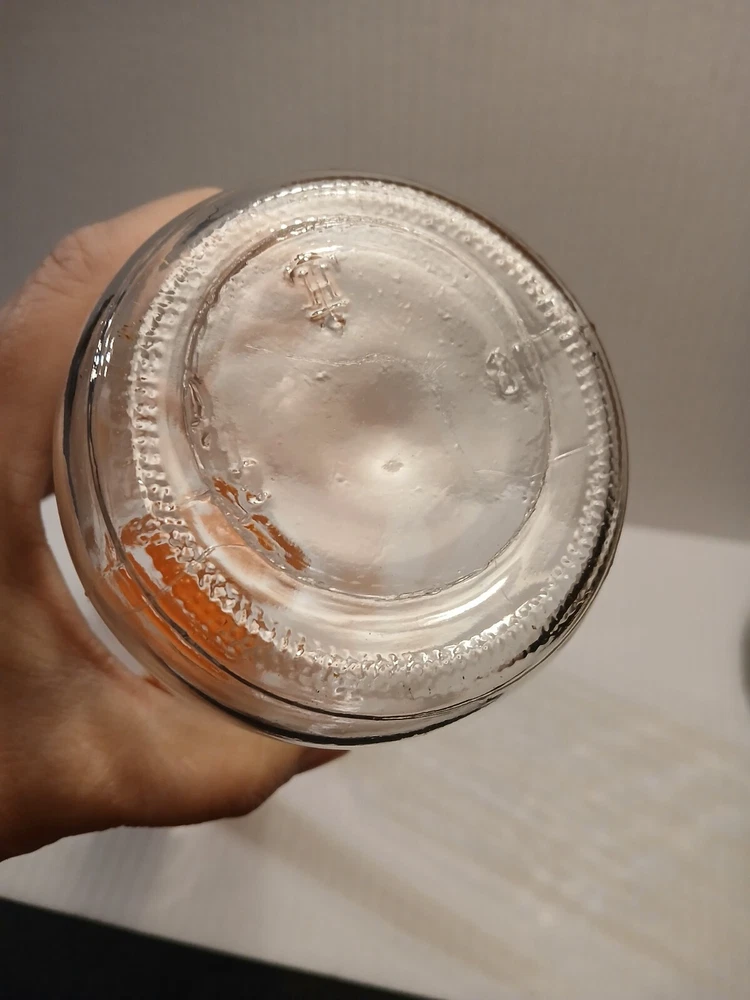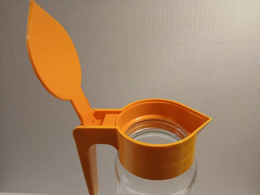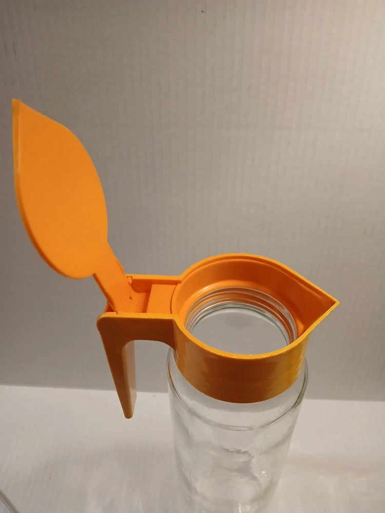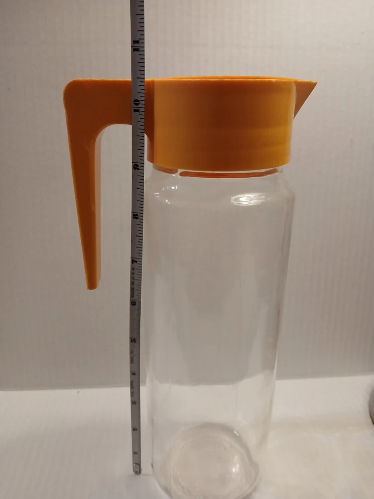A blast from the past. I believe this style pitcher came out in the late 60s. I do remember them from the 70's. Nice juice pitcher. I took a picture of what in the picture looks like a Crack however you can't feel anything, and there is another one on the other side, but I believe it is a seam.