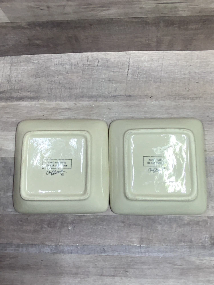 Vintage set of 2 Chad Barrett Creative Co-Op Red Christmas Poinsettia 4" Trinket Plate Dish. No chips, nicks or cracks. In very good pre-owned condition. The pictures provided are part of the descript...