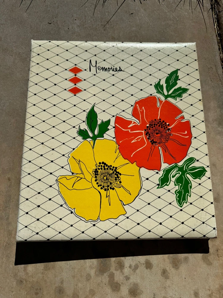 From estate- this is a Vintage KLEER-VU Mod Mid Century Modern Photo Album Flower Yellow Orange. Has the older photo pages so I would update to the new ones that are acid free. VGC. All sales final.