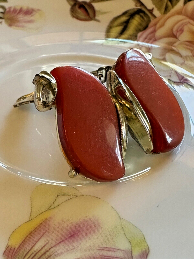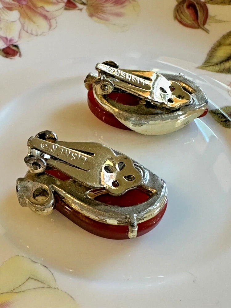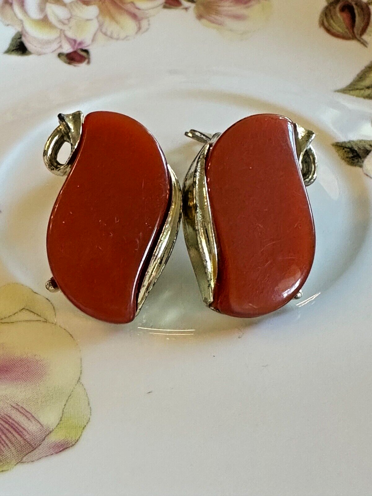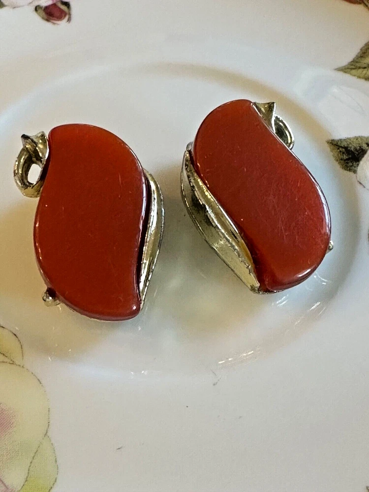 Add a touch of retro elegance to your ensemble with these vintage Lisner clip-on earrings. Featuring a stunning swirl design, they exude a captivating charm that's sure to turn heads. The warm rust orange hue of the simulated moonstone stones radiates a vintage vibe, perfectly in line with mid-century fashion trends. Crafted with care, these earrings showcase a huggie style that gracefully hugs the earlobes, providing both comfort and a secure fit. The lucite material paired with an unknown base metal that's coated in gold offers an exquisite contrast, making these earrings a versatile accessory for any jewelry collection. See pics for details - photos give the best description of the item, please review all photos Any noticeable flaw or damage will be disclosed in the description of the item Vintage - Due to the age of the item, they may have imperfections and/or light tarnish or need to be cleaned. Some of the materials (metal, stone, etc.) are unknown; bc these items are estate finds, I am unaware of the composition of materials. These items are old and have been stored for some time. Sold as-is. Other - We offer new and used items, costume and fine jewelry. Please reviews photos and description. The material will only be disclosed if the item is clearly marked. Because these items are obtained through estate finds, the information we have is limited. Please ask all questions prior to purchase!! You may add multiple items from The GoodHaul Store to cart and checkout all at once, since we require immediate payment for all Buy It Now listings. Thank you for visiting The GoodHaul Store , where you can wear what's new to you!