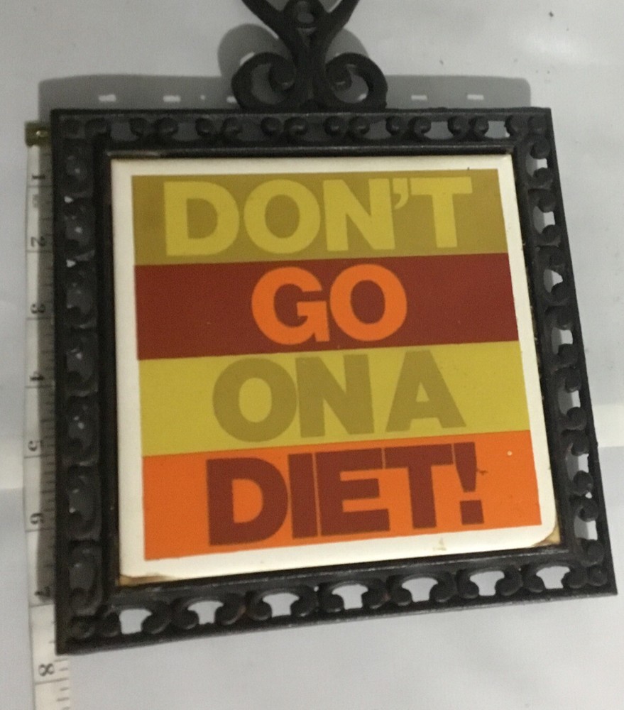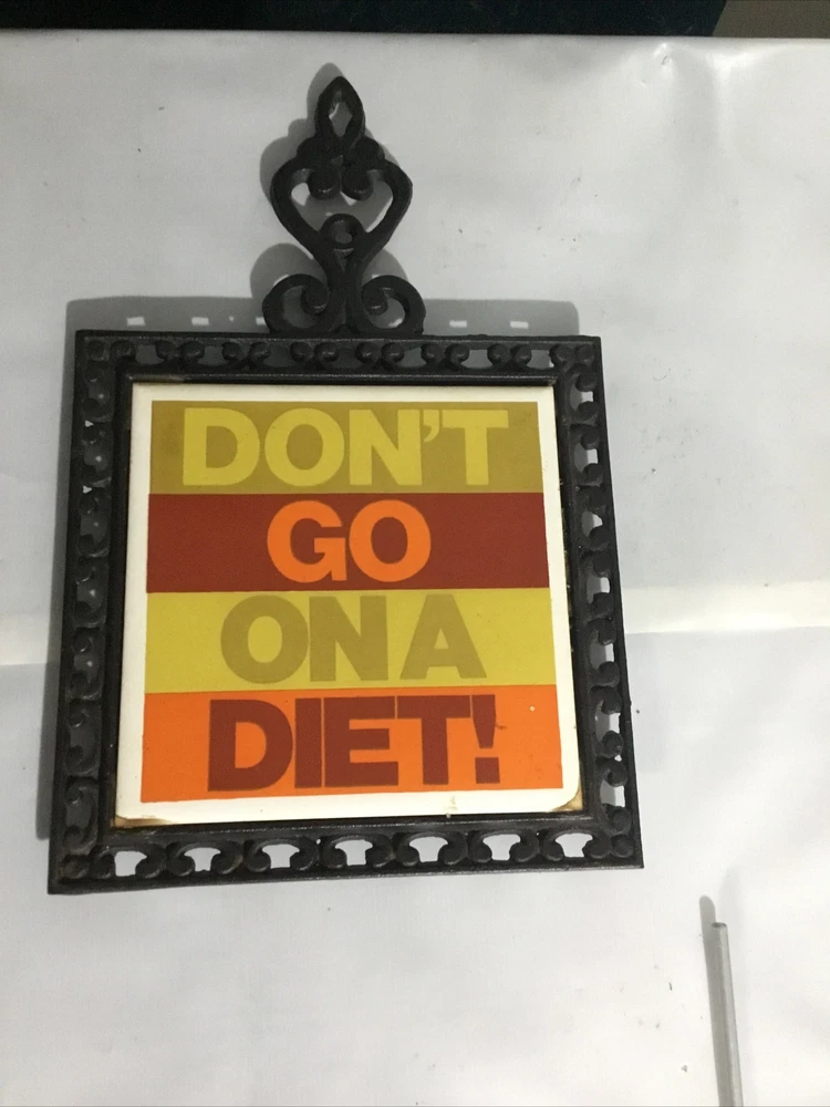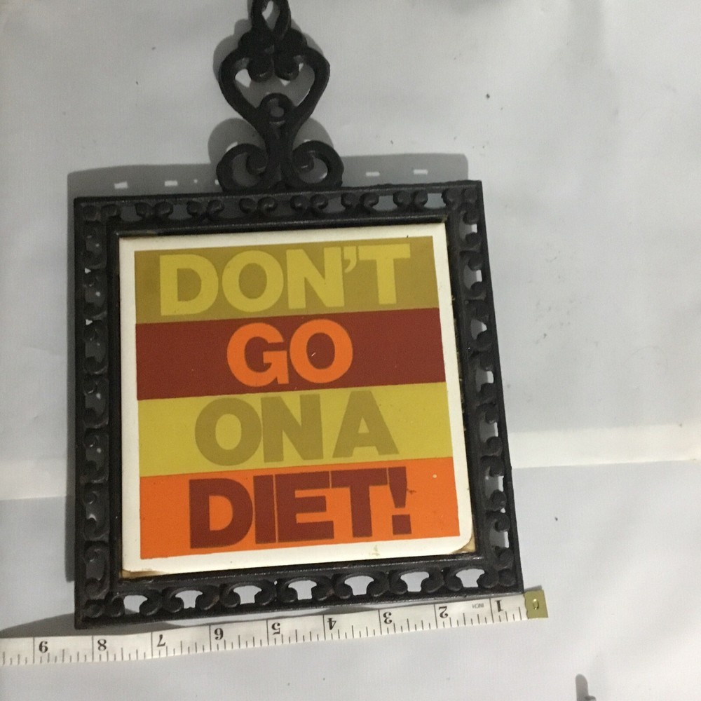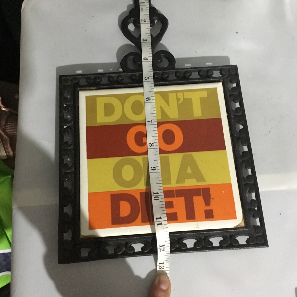 Vtg Mid Century Cast Iron Ceramic Tile Trivet Orange ‘Yellow lime green...
