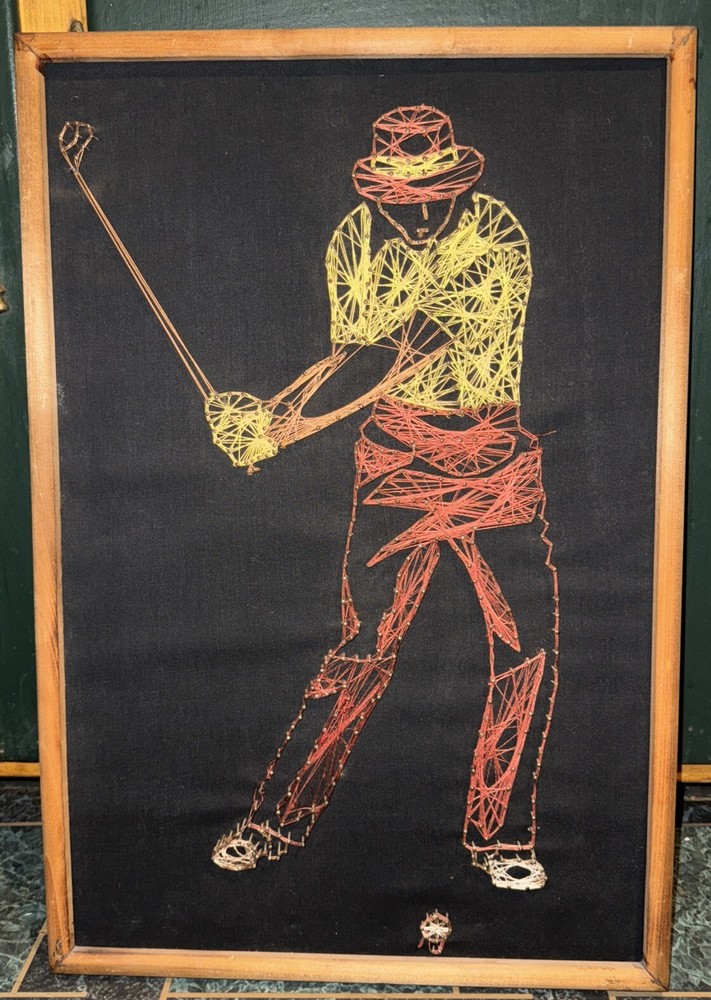 This vintage golf string art is absolutely stunning! The vibrant colors and intricate threadwork perfectly capture Chi Chi Rodriguez’s iconic swing. The mid-century design adds a nostalgic charm, making it a must-have for any golf lover or collector. The craftsmanship is top-notch, and the framed display looks fantastic on my wall—such a unique conversation piece! Highly recommend for anyone who appreciates sports memorabilia with artistic flair.