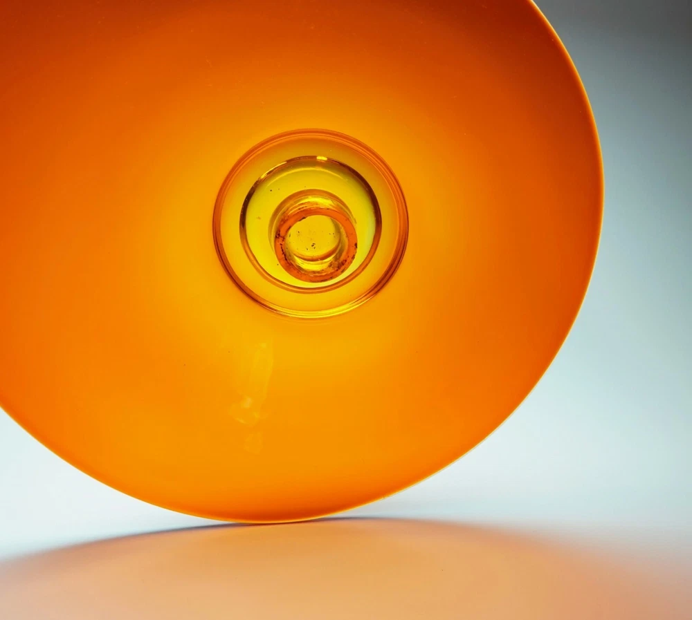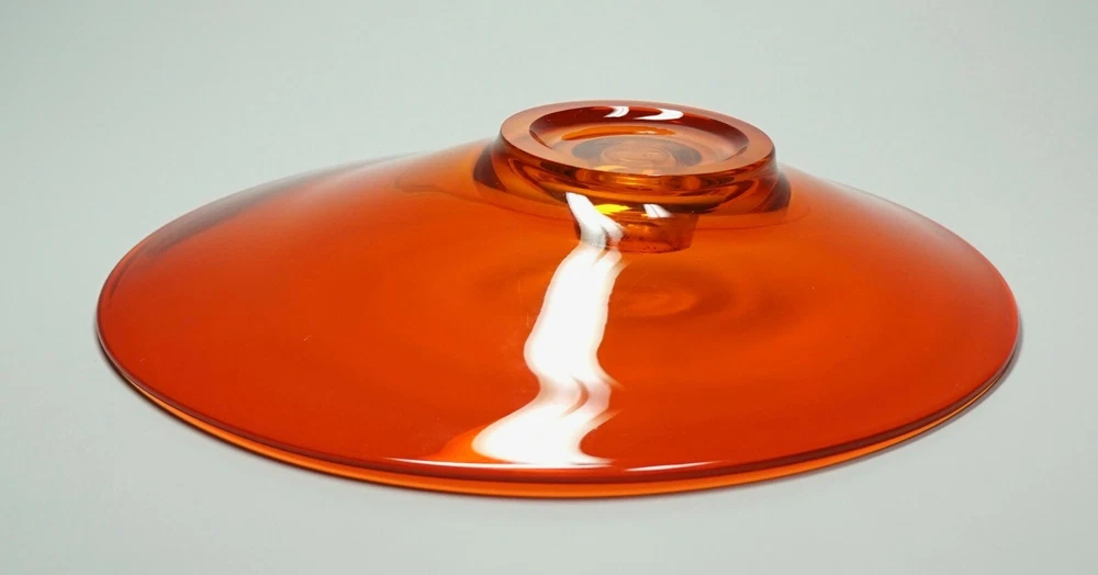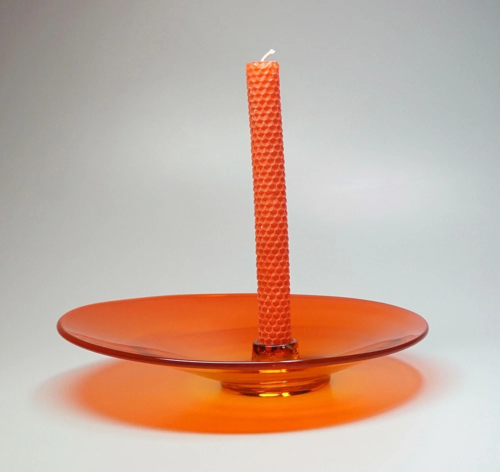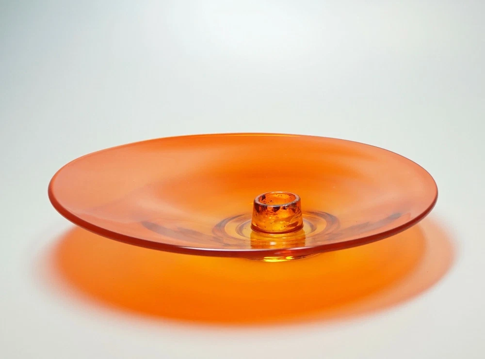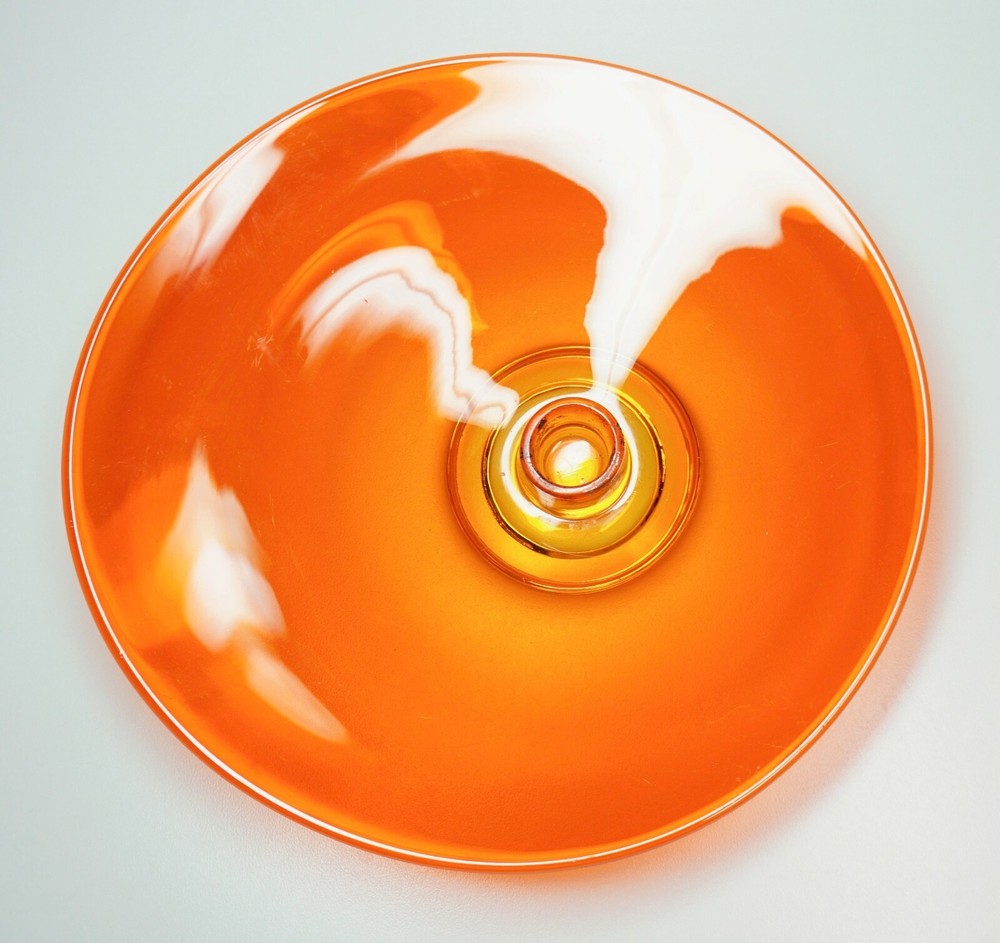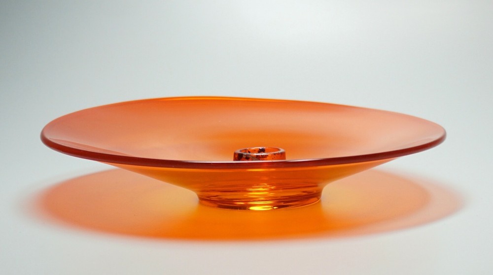 Vintage Mid Century Mod Bright Orange Glass Candle Holder Dish 10" Ovoid Centerpiece Stunning piece of mid century modern glass Minimal signs of age/use Brilliant, transparent orange with a slight fade to yellow around candle socket 10 1/4" x 10" ovoid shape Height slopes from 2 1/8" to 1 5/8" The candle socket is placed off-center Holds a taper candle up to 7/8" diameter (not included) No chips or cracks A few use marks upon close inspection Expect some wax residue on socket No maker mark detected Weight before packing: 1 pound 12 ounces Professionally packed with extreme care. Extra cushioning and sturdy, oversized box for fragile items. A macro lens is used to capture as much detail as possible. Keep in mind when using zoom tool that the item is magnified many times, which exaggerates even the tiniest scratch. Apology Shipping Note: As of June 1, 2019, USPS has escalated shipping costs. Packages over 1 cubic foot will incur considerably higher shipping charges based on dimensions of box. Happy to answer additional questions and provide more photos prior to purchase Items may show blemishes not typically seen with the naked eye Item sold "as is" and not returnable - Please ask questions prior to purchase Professionally packed - Quickly shipped It is Buyer's responsibility to examine photos, read the entire item description and ask questions pertaining to color, condition, etc. prior to purchase. If color is critical, contact me prior to purchase as color varies based on lighting conditions and computer monitors International Buyers: Import duties, taxes and charges are not included in the item price or shipping cost. These charges are the buyer's responsibility. Please check your country's customs office to determine what these additional costs will be prior to making an offer or purchasing. 90% of our packing materials are recycled from local businesses