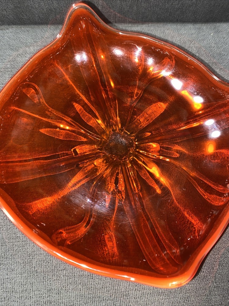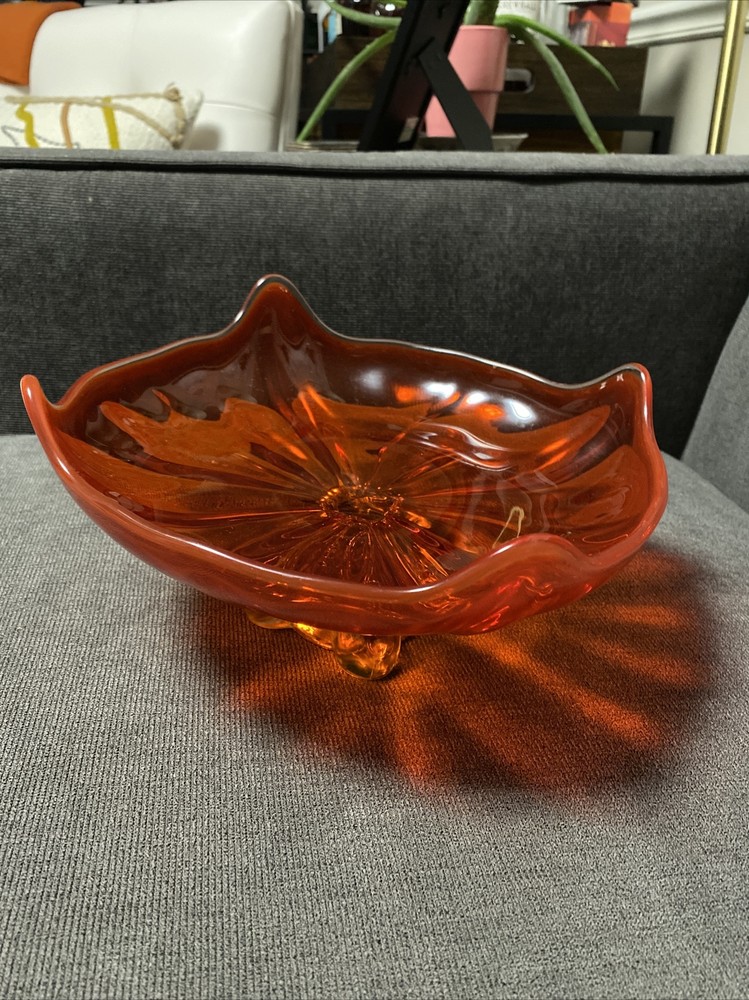 Vtg Mid Century Viking Glass Epic Bon Bon Dish Bowl Persimmon Orange 9.5”x9.5”. Condition is "Used". Shipped with USPS Priority Mail.