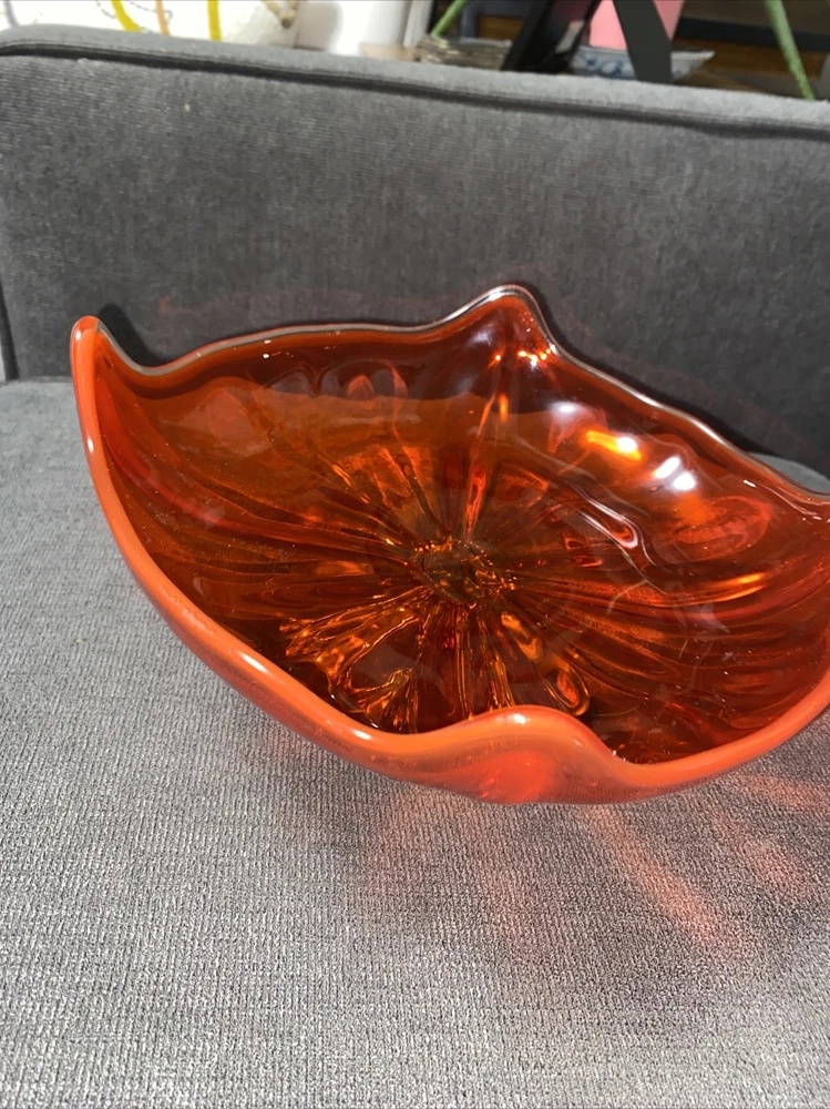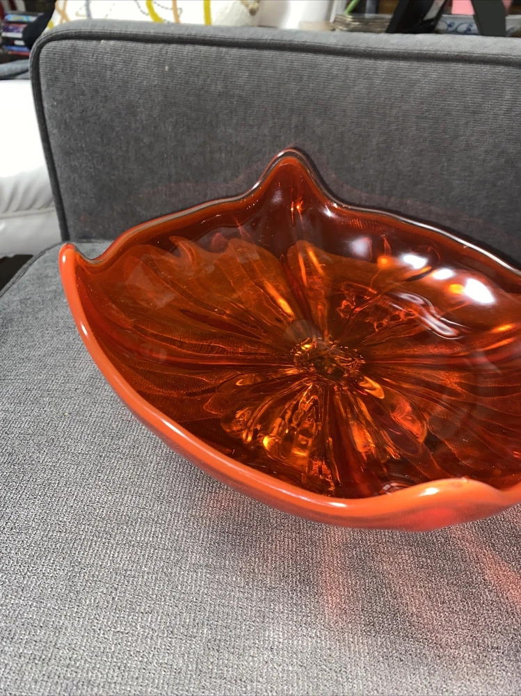 Love this vibrant persimmon dish! The mid-century style is stunning, and the 9.5” size is perfect for candy, keys, or decor. Great vintage condition, and shipping was fast. A gorgeous pop of color!