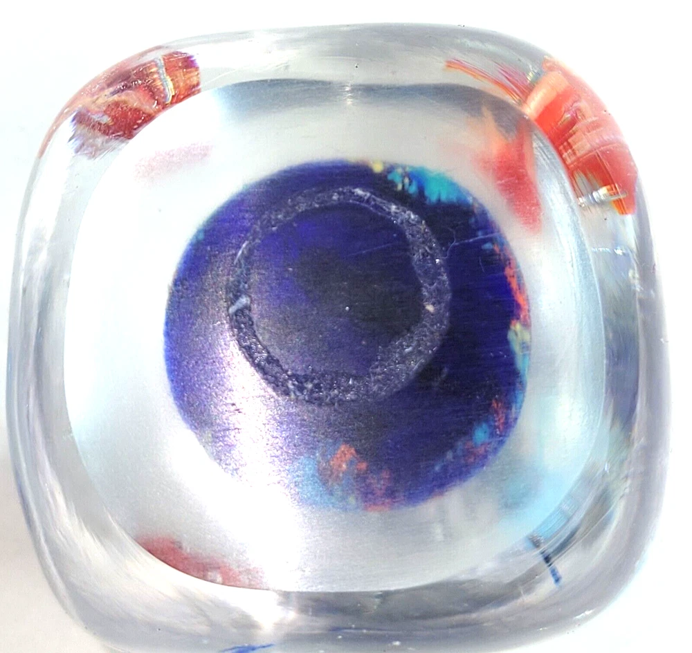 Vtg Mid-Century Handblown Glass Paperweight Sea Scene Orange & Blue 2 1/4"W x 2 1/4"H....