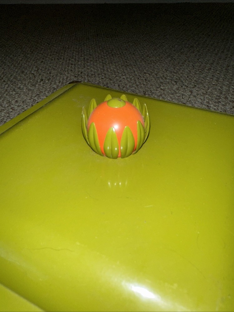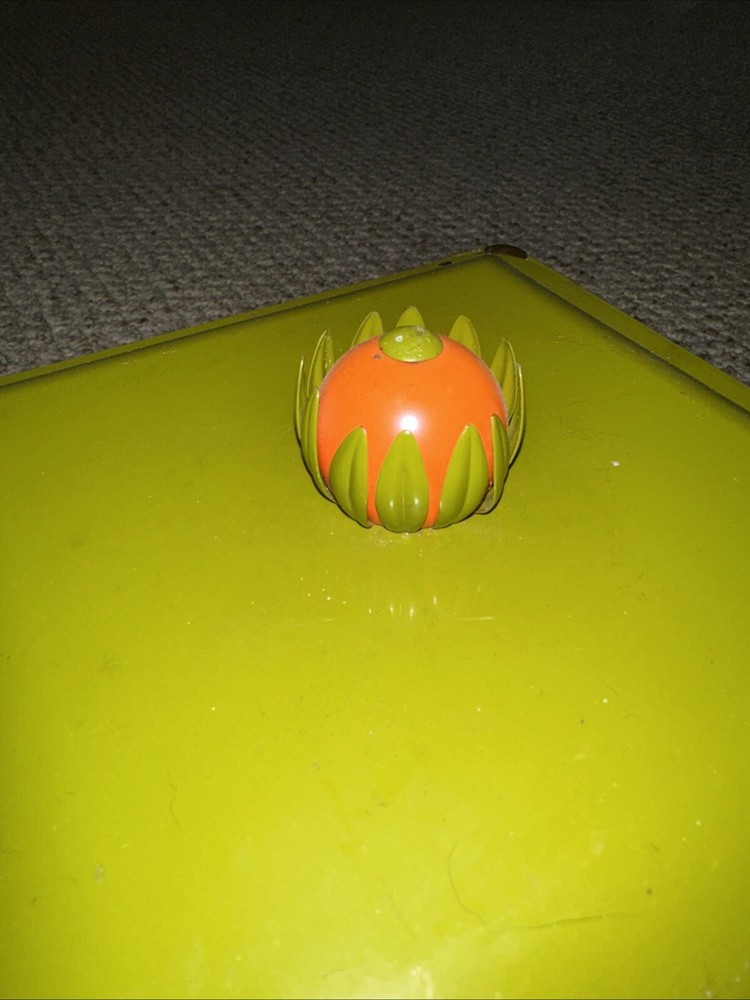Vtg Mid-Century Lidded Double Chafing Green Geometric Orange Flower Top Handles. Condition is Used. Shipped with USPS Ground Advantage....