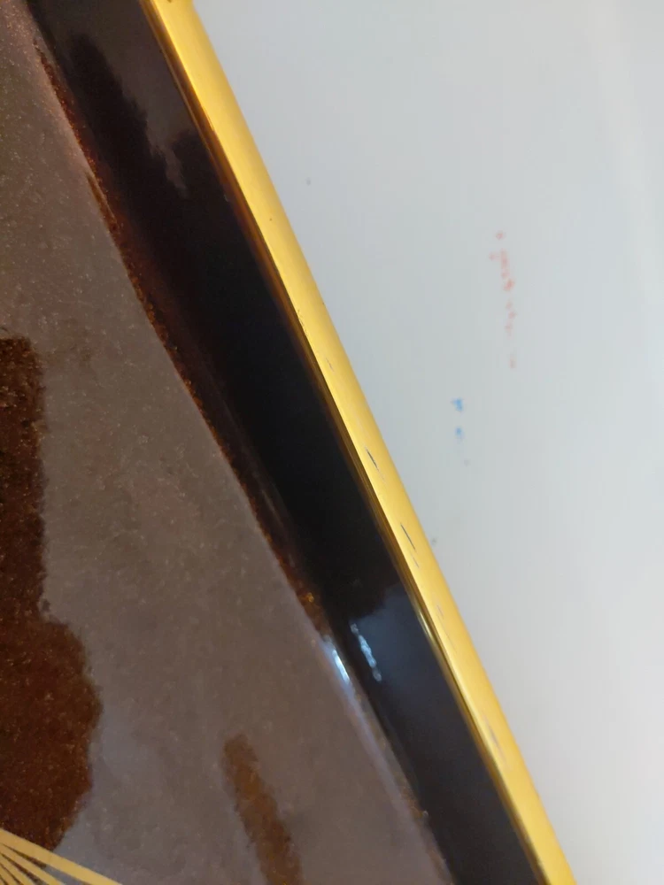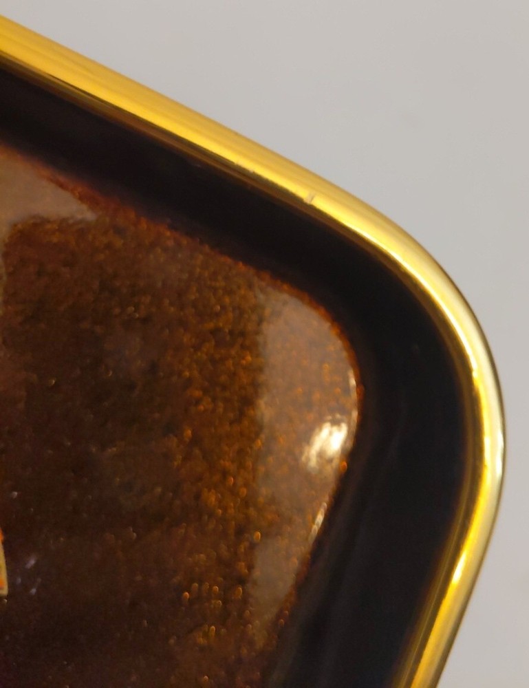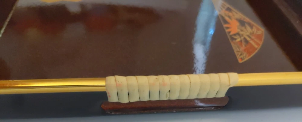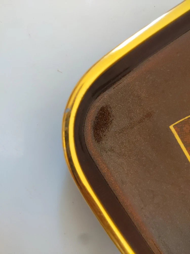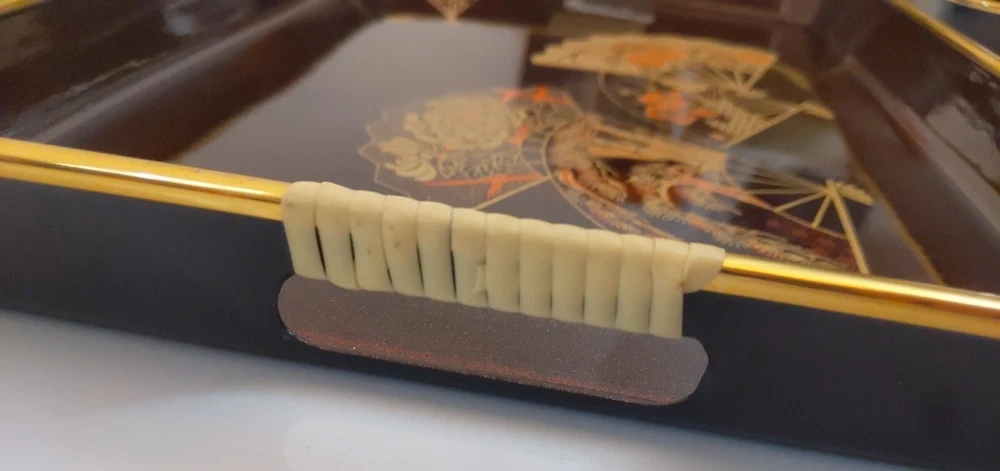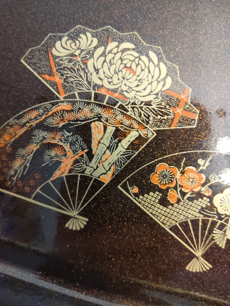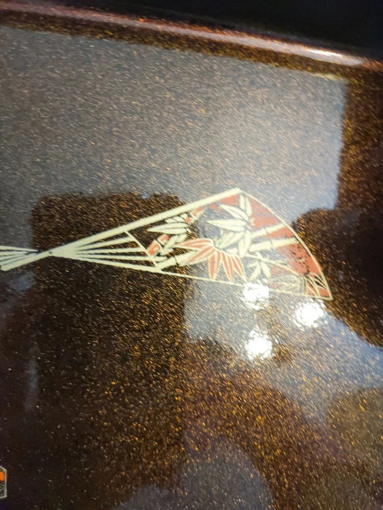 Vtg Oriental Mid Century Fans W/ Floral Landscape Brown/Orange 3 Tray Set. I cannot tell if these are plastic, melamine or wood 3 trays good condition see pics please for scratches etc Ask questions Sizes are 18.5" x 11.5" 10.5" x 10.5" 10.5" x 7"