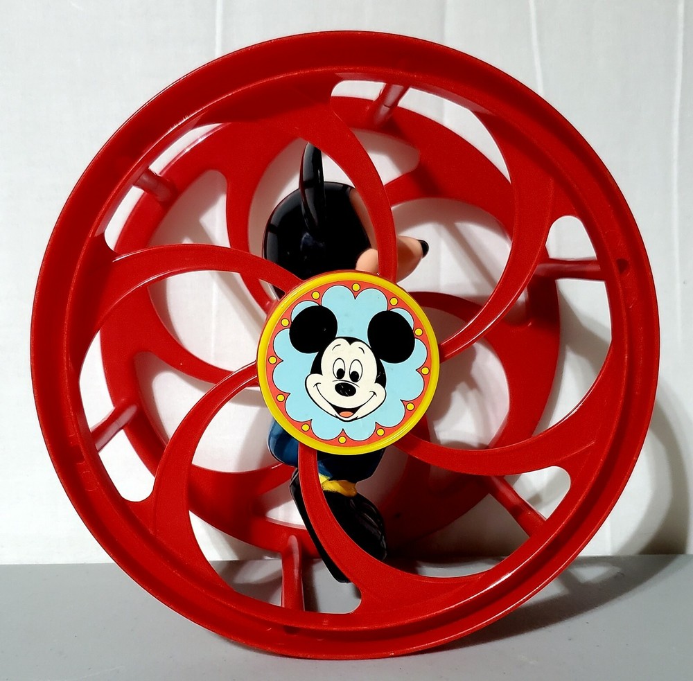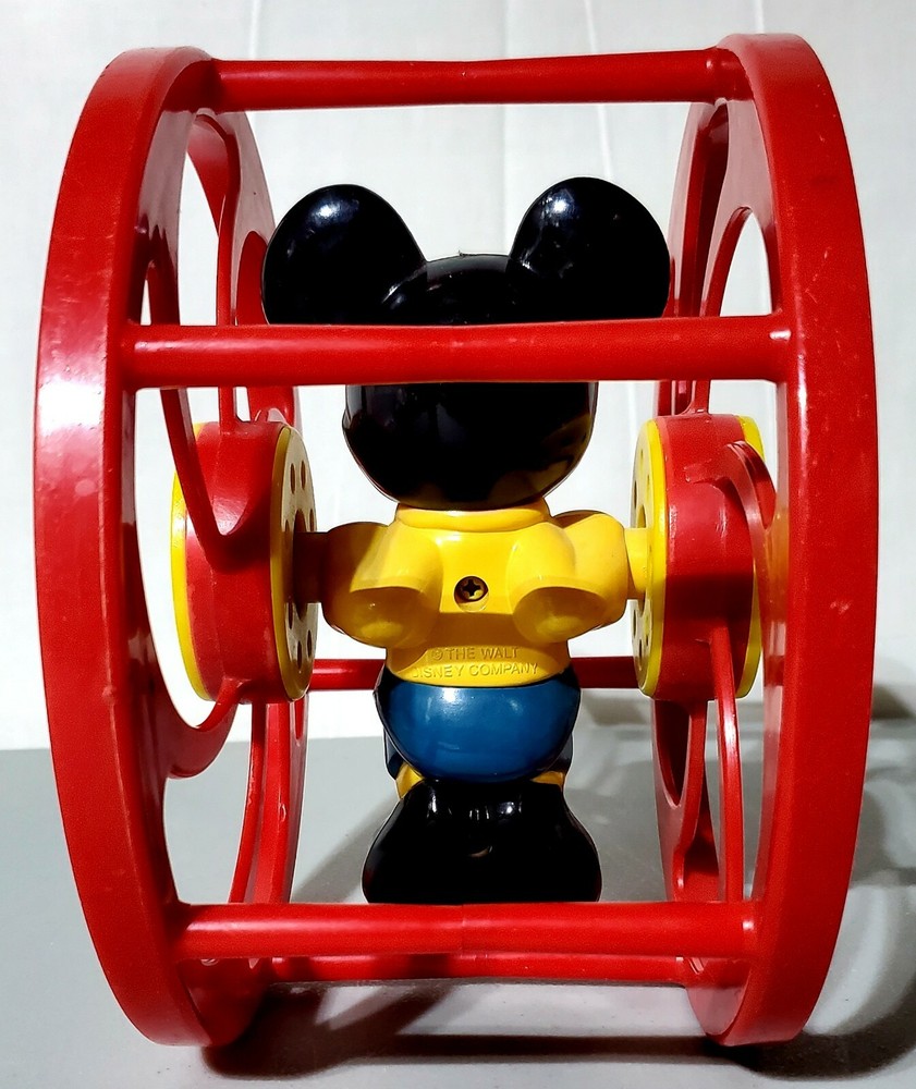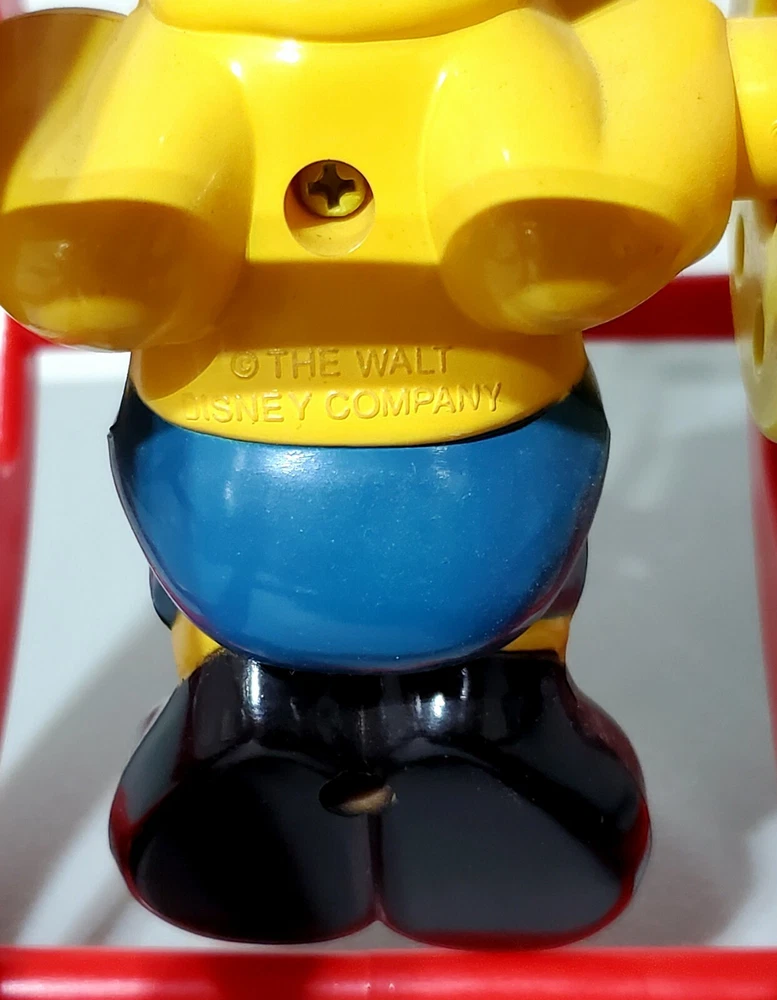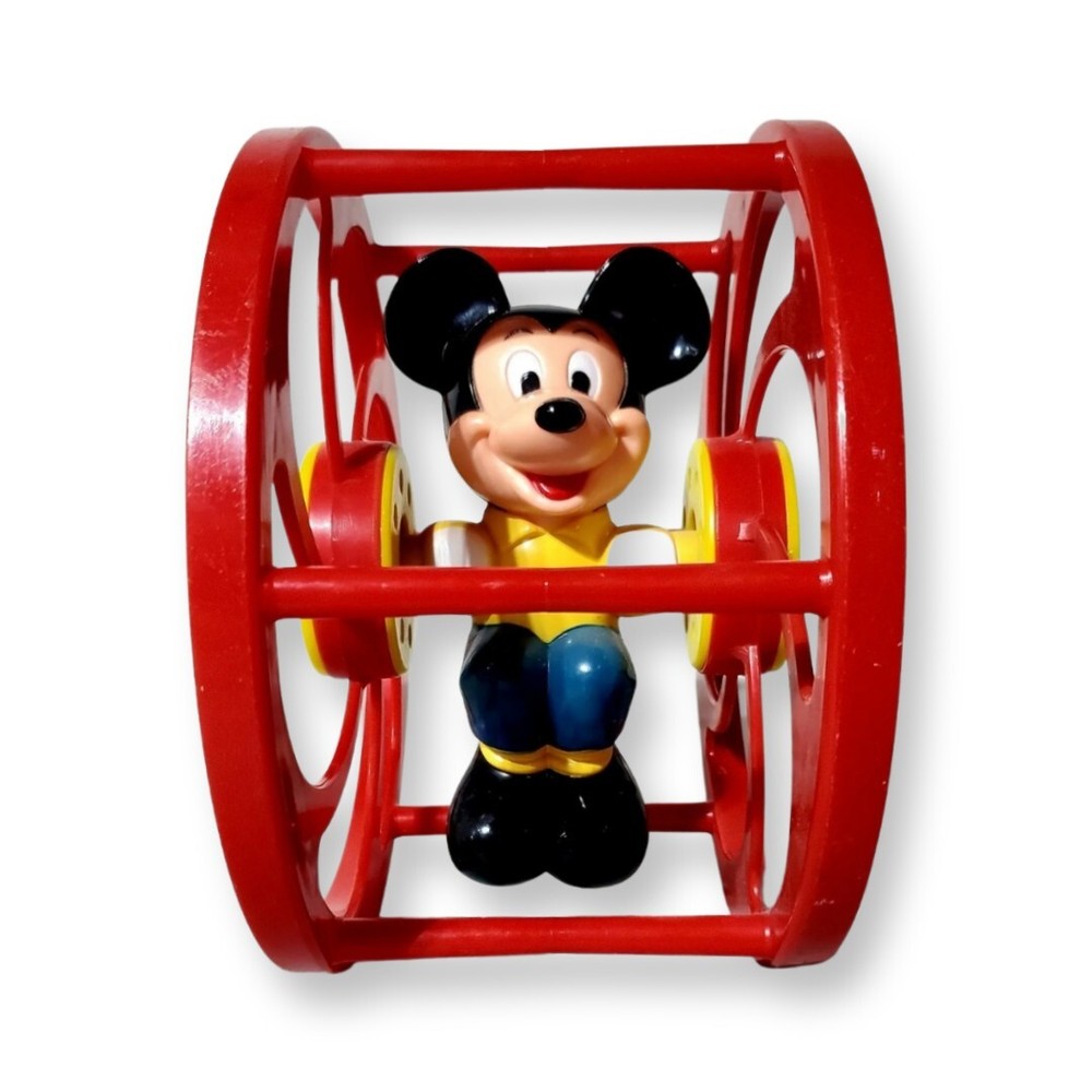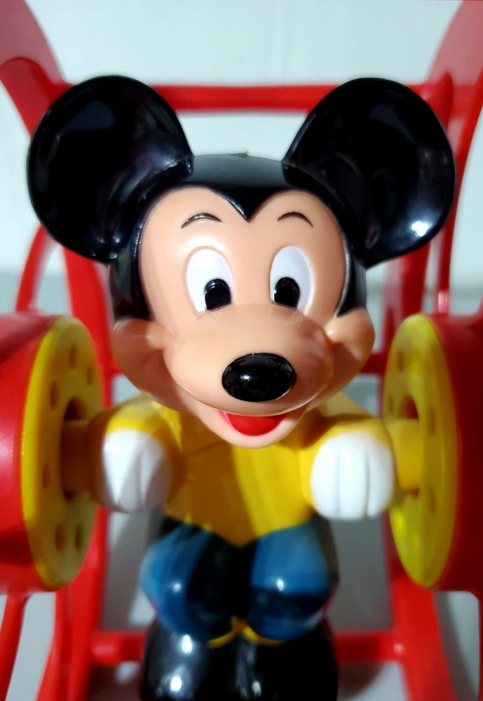 This vintage toy is a must-have for any Disney fan! The red plastic wheel toy features Mickey Mouse, the iconic character from the TV show, and is suitable for both boys and girls. The rattle and pull-along/push-along features make it a great addition to any creative toy collection. The 1:16 scale model is an original and licensed reproduction from Disney, and is perfect for collectors or as a novelty item. The Disney Tots model is from the 1990-1999 time period and was manufactured in Hong Kong. Add this unique piece to your collection today!