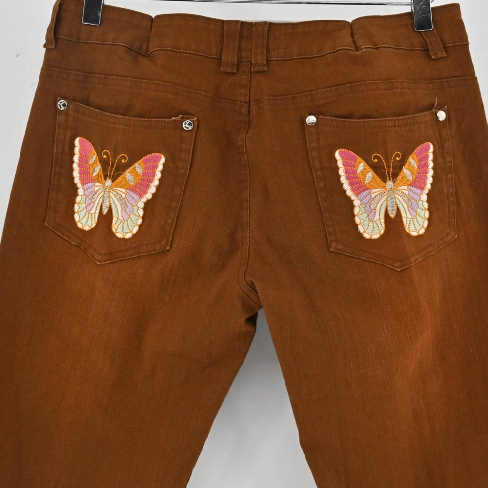 Love these vintage XCLUSIV jeans! The butterfly embroidery adds such a fun, boho vibe, and the fit is perfect—just the right amount of stretch for comfort. The metallic details and rust orange color give off major Y2K energy, making them a unique statement piece. They’re in amazing condition, true to size, and super flattering. Great for festivals or everyday wear!