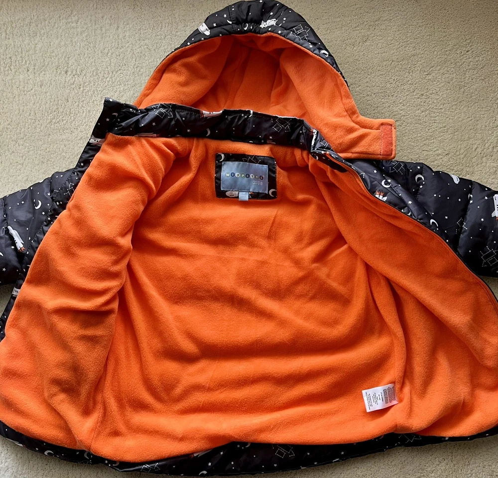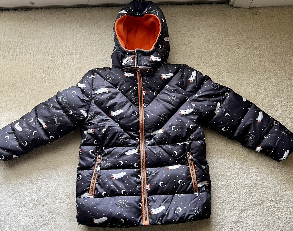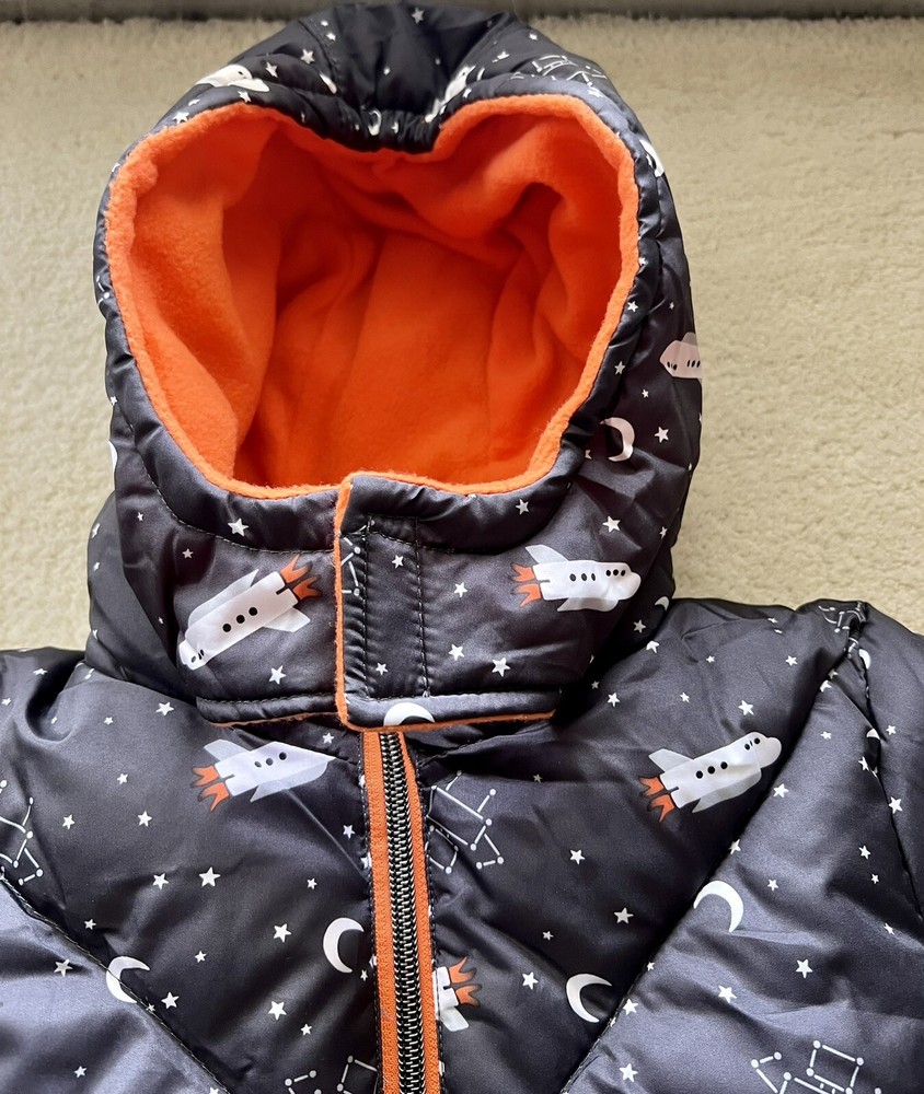 WIPPETTE HOODED SNOW JACKET ORANGE SPACESHIP PATTERN SNOWBOARD SKI KIDS SIZE 6...