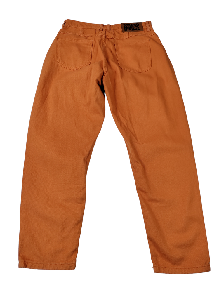 WOMENS RECLAIMED VINTAGE SIZE UK W 32" ORANGE DENIM JEAN MID RISE CHINO TROUSERS WOMENS RECLAIMED VINTAGE SIZE UK W 32" ORANGE DENIM JEAN MID RISE CHINO TROUSERS Label Size: W32" Brand: RECLAIMED VINTAGE Colour: ORANGE Pattern: N/A Material: 100% COTTON Type: JEANS Across Waist (inches): 15.5 Inside leg (inches): 26 Across hem ( cuff ) in inches : 6.5 Condition: VERY GOOD RETURNS All items are hand checked fo authenticity. Picture enlargement is there so you can see the detail and quality before purchase If for any reason you are unhappy with your item when arrives as most items are pre owned please contact me first before leaving feedback so I can solve any issues SHIPPING All items are dispatched within 2 working days tracked via myhermes Listing and template services provided by inkFrog