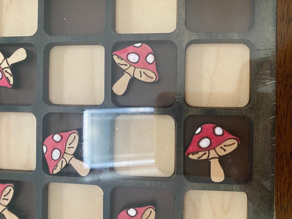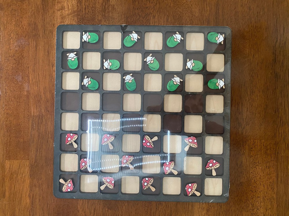 WOODSY CREATIVE CO - Wooden Checkers Boardgame Gnomes & Mushrooms Handcrafted Wooden Checkers Board size - 11.75" x 11.75" This wooden checkers board from WOODSY CREATIVE CO is a perfect addition to any home décor. The board is designed with gnomes and mushrooms, adding a touch of whimsy to your living space. The square shape and multi-color design make it a great piece to display on a message board or as a decorative accent in your home. Made from high-quality wood, this chequers board is perfect for game nights or as a statement piece.