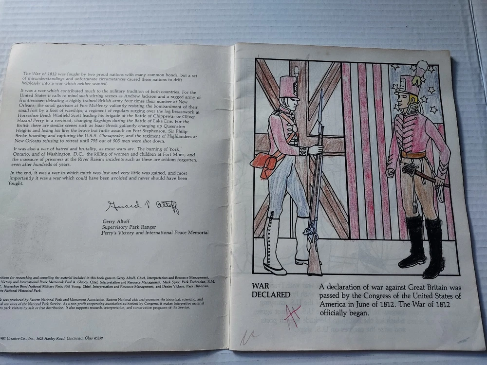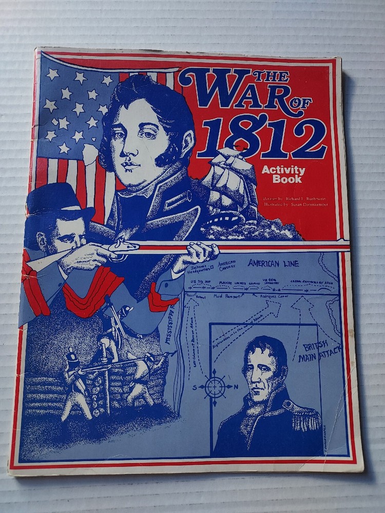 The War Of 1812 Activity Book 1981 Richard L Ruehrwein Illustrated Creative Co.. Some pages are colored - noted in photos Bumped Rubbed Corners and Edges Creases Marks, Stains Please See Pictures! Available for questions/further pictures and/or description. Thank you for looking! Please check out my other listings! Happy Reading! You Are Appreciated!