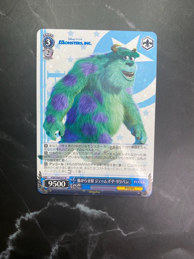 Weiss Schwarz TCG! James P Sullivan PXR/S94-077 R (Monsters Inc) We provide quality products, accurate conditions & great protection in shipping/handling! A collectors eye for a collectors eye, we know what collectors want as fellow collectors so purchase with confidence! 100% accurate in pictures & description, ask for more info or images by contacting us. If the condition of the product is not mint then we will show pictures showing the signs of damage PROTECTION: Clear Penny Sleeve included. CONDITION: Brand New Please REVIEW PICS for further inspection PACKAGING:We value our customers by providing the best shipping & handling possible so their products are delivered safely