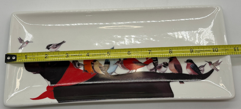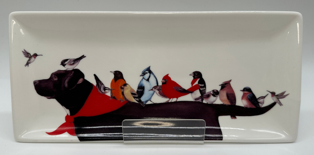 The Wendy Russell Bird Dog Serving Plate from Creative Co-op is a charming addition to any canine enthusiast's collection. Featuring an intricate dog theme with an elegant black lab accent, this collector's piece is not only functional but also a decorative delight. Crafted with care, the plate showcases a beautiful blend of colors that bring the artwork to life. Ideal for displaying or serving, it's a versatile item that celebrates the bond between dogs and their owners. Whether for personal use or as a thoughtful gift, this plate is sure to be admired. Plate measures approximately 10.5" x 4.75"