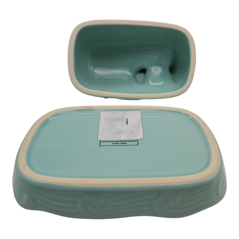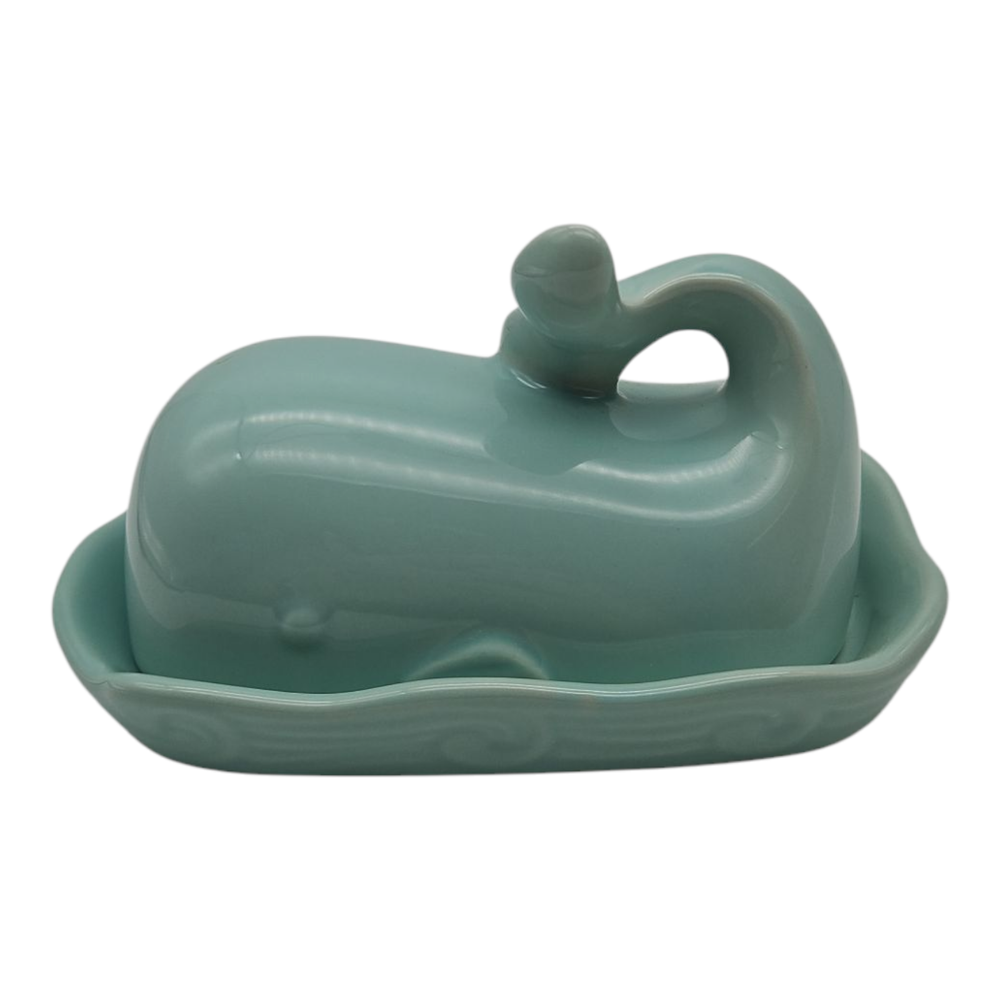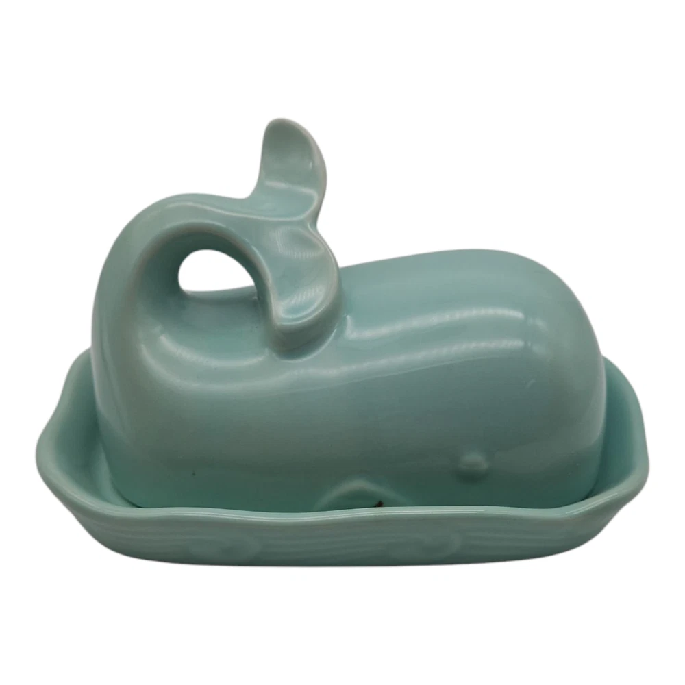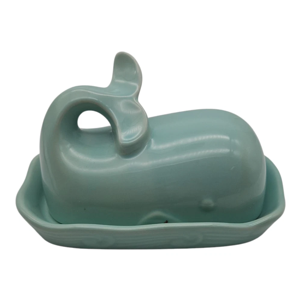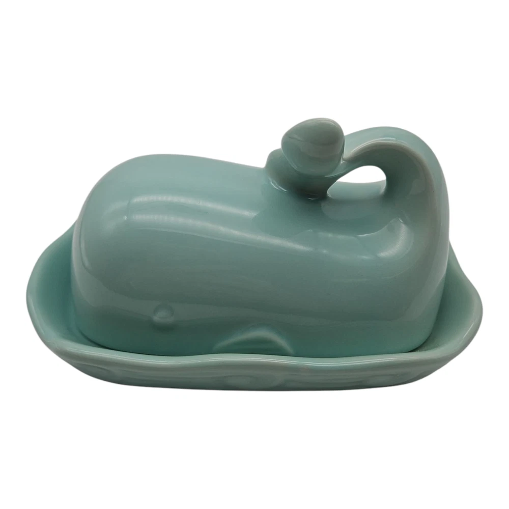 The Creative Co-Op Whale Shaped Butter Dish with Lid in Aqua is a unique and stylish addition to any kitchen or dining table. Its Mediterranean-inspired design and nautical theme make it a fun and functional piece for serving butter. The covered dish shape and all-over pattern add a touch of creativity to meal times, while the vibrant aqua color adds a pop of color to the table setting. With dimensions of 7 inches in length, 4.5 inches in width, and 4.25 inches in height, this butter dish is both practical and visually appealing.