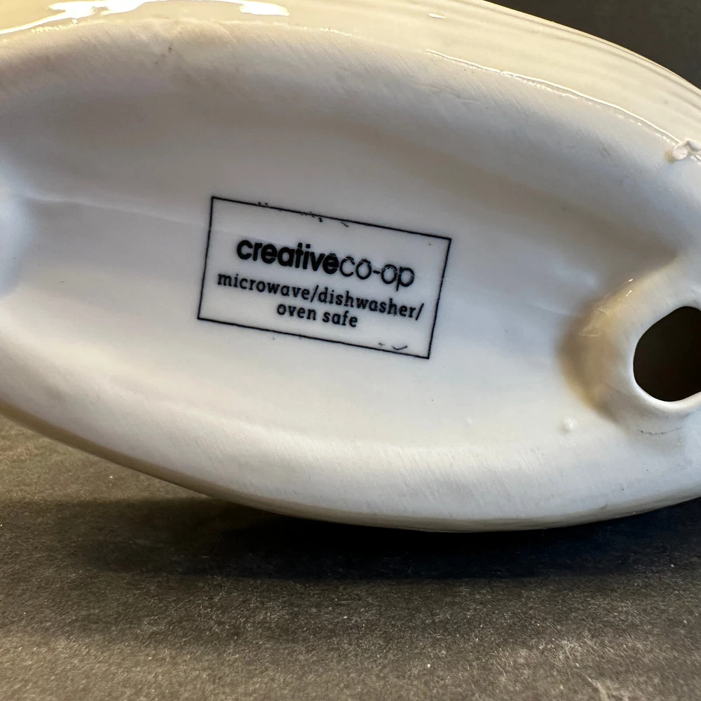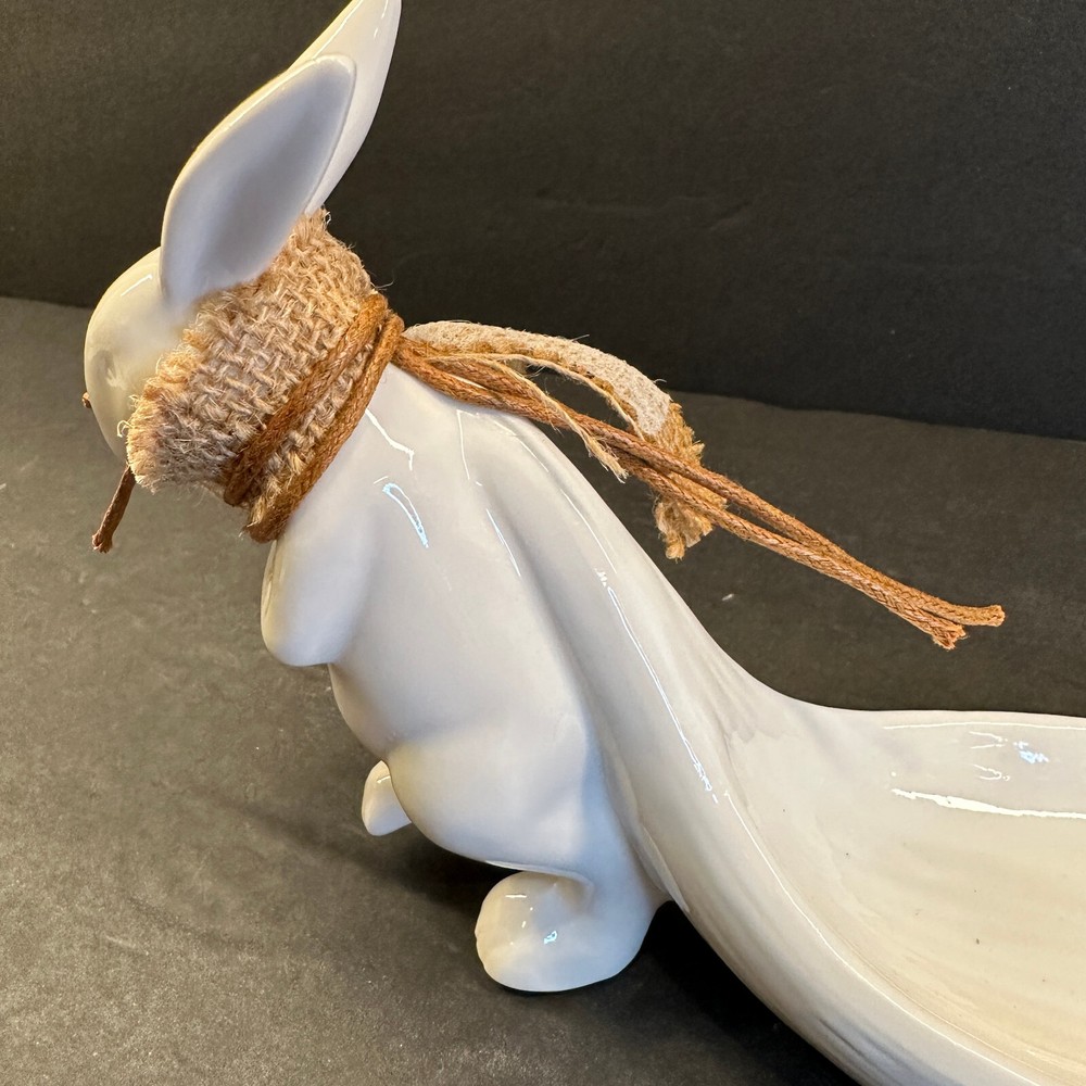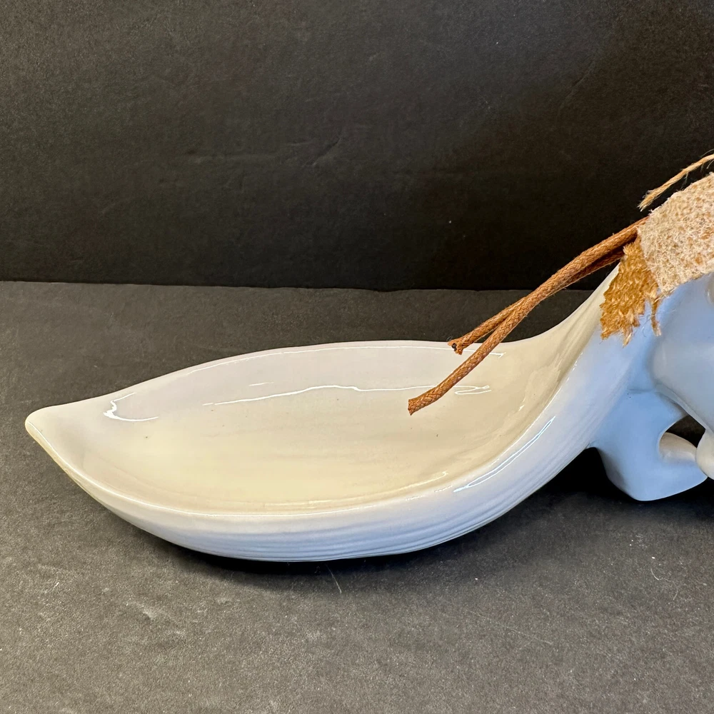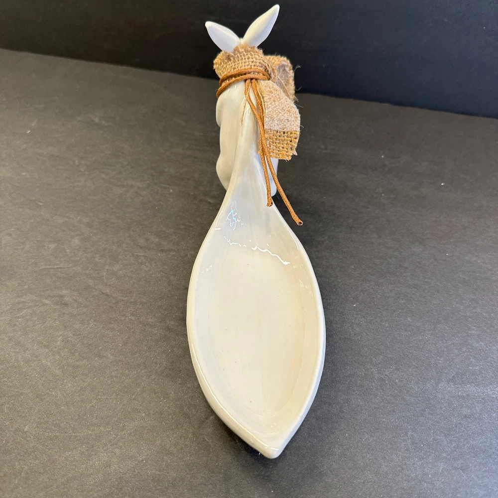 White Stoneware Bunny Rabbit Pulling Leaf Shaped Trinket / Candy Dish - Creative CoOp Made with stoneware Approximately 9.5"L x 3"W x 5.5"H Leaf Shaped Tray approximately 6"L x 2.75"H Excellent preowned condition. Most of the items I sell are estate or thrift store finds, and are presented to you in as is, as found condition. They are described to the best of my knowledge. Some wear is to be expected, unless described as flawless or mint. Because of their age, items may have some imperfections such as minor scratches, rim wear, light staining, and/or minor crazing. I try to describe each item accurately and list all known flaws or damage, however I could miss something. Please look closely at all the photos for condition as they are considered to be part of the description and email with any questions before buying.
